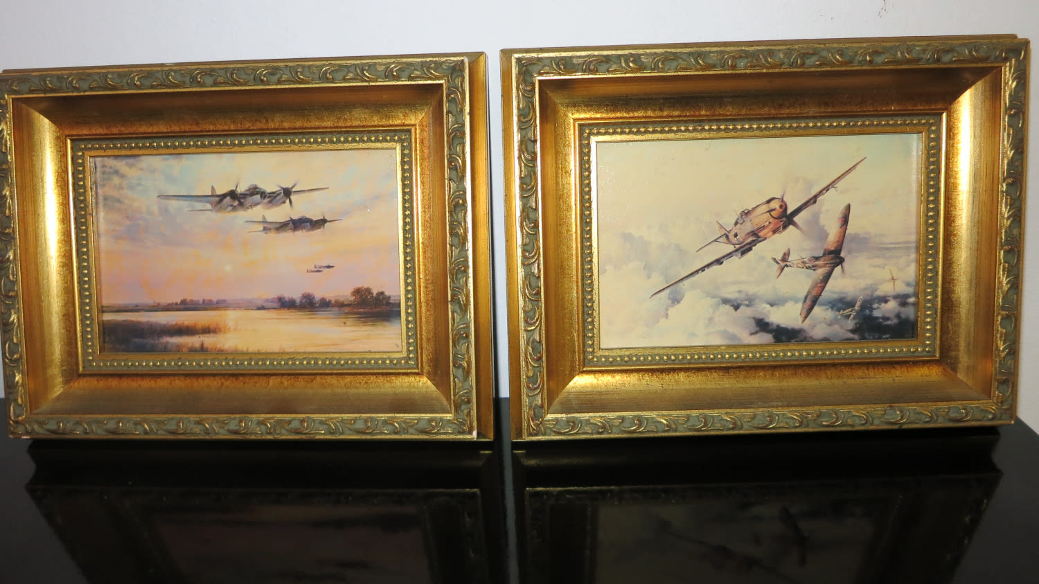 These fine prints have been varnished over to protect the paper but almost gives the impression of them being original paintings. The print is mounted on board and then framed in beautiful golden frames. The images are desired by war memorabilia collectors.