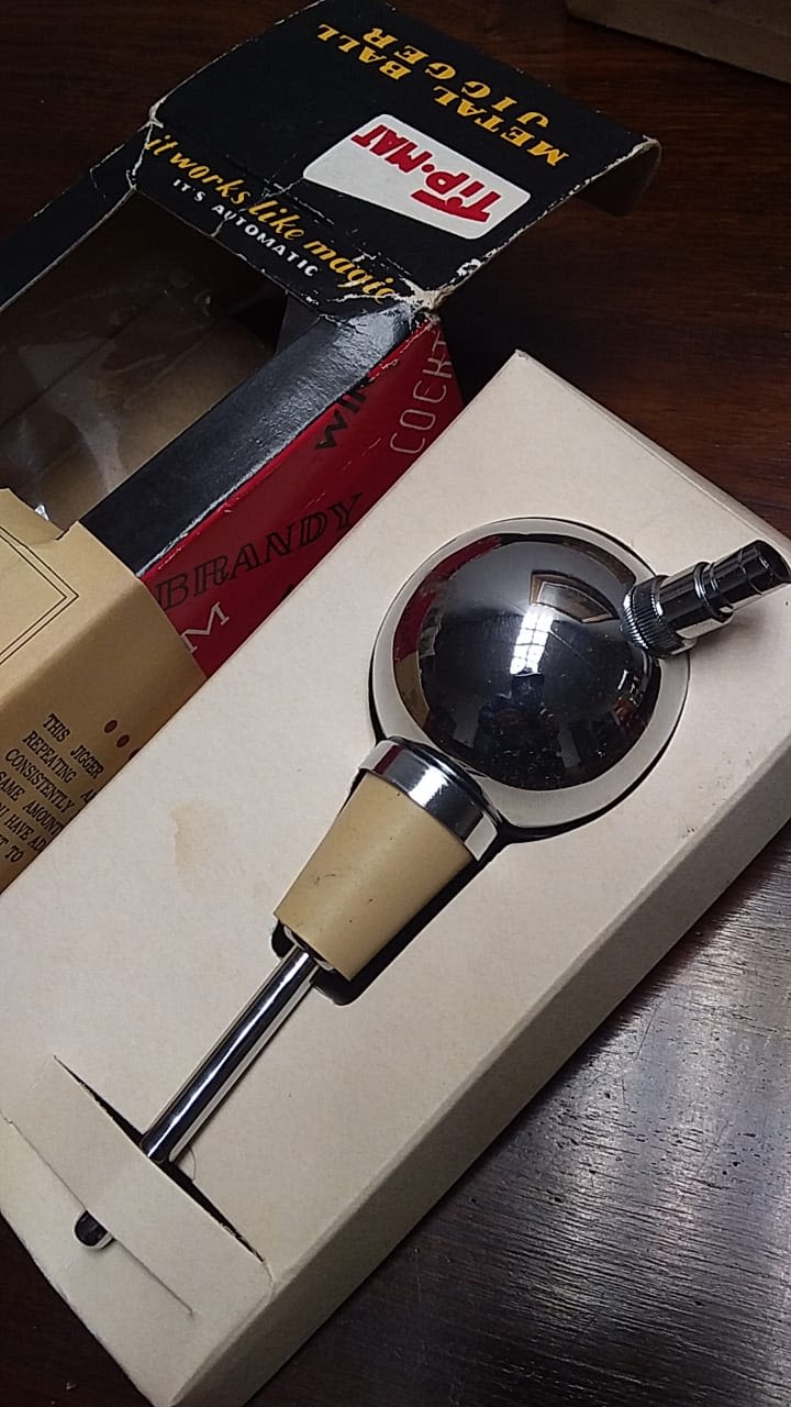 Vintage1960's Tip-Mat Metal Ball Jigger Beverage Measure Original Box 1 - 1 1/2oz Shots