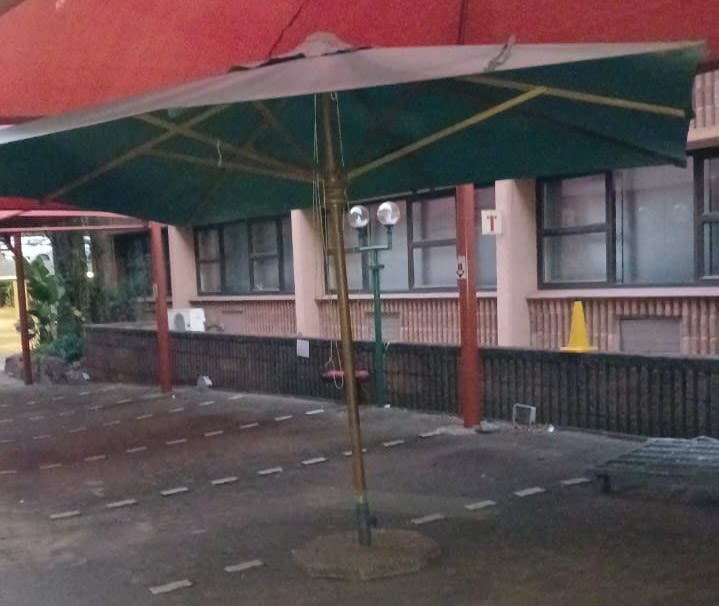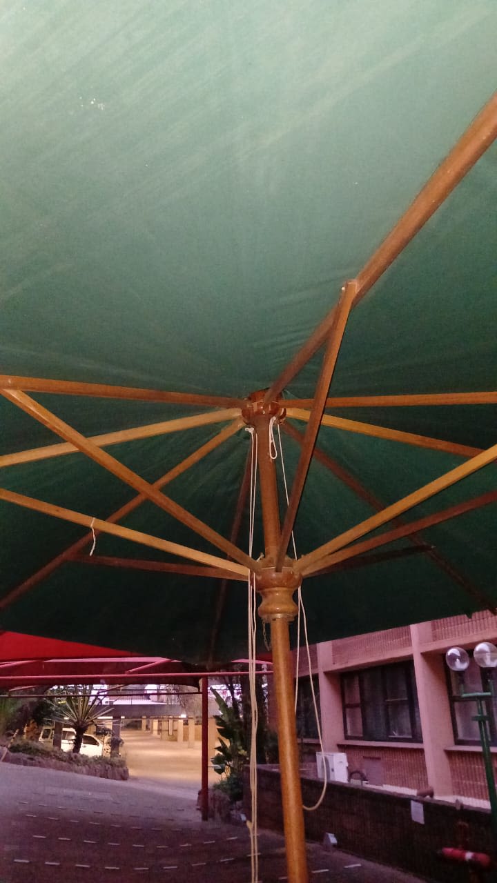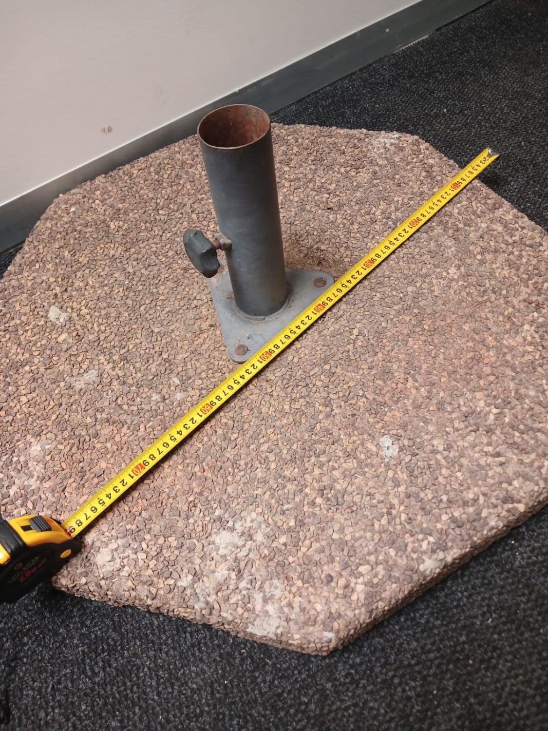 Really LARGE (Standing Over 2.5m Tall) used canvas umbrella with a large heavy concrete base in good condition, the cream coloured cover has a slight rip in the top so could use a quick stitch.