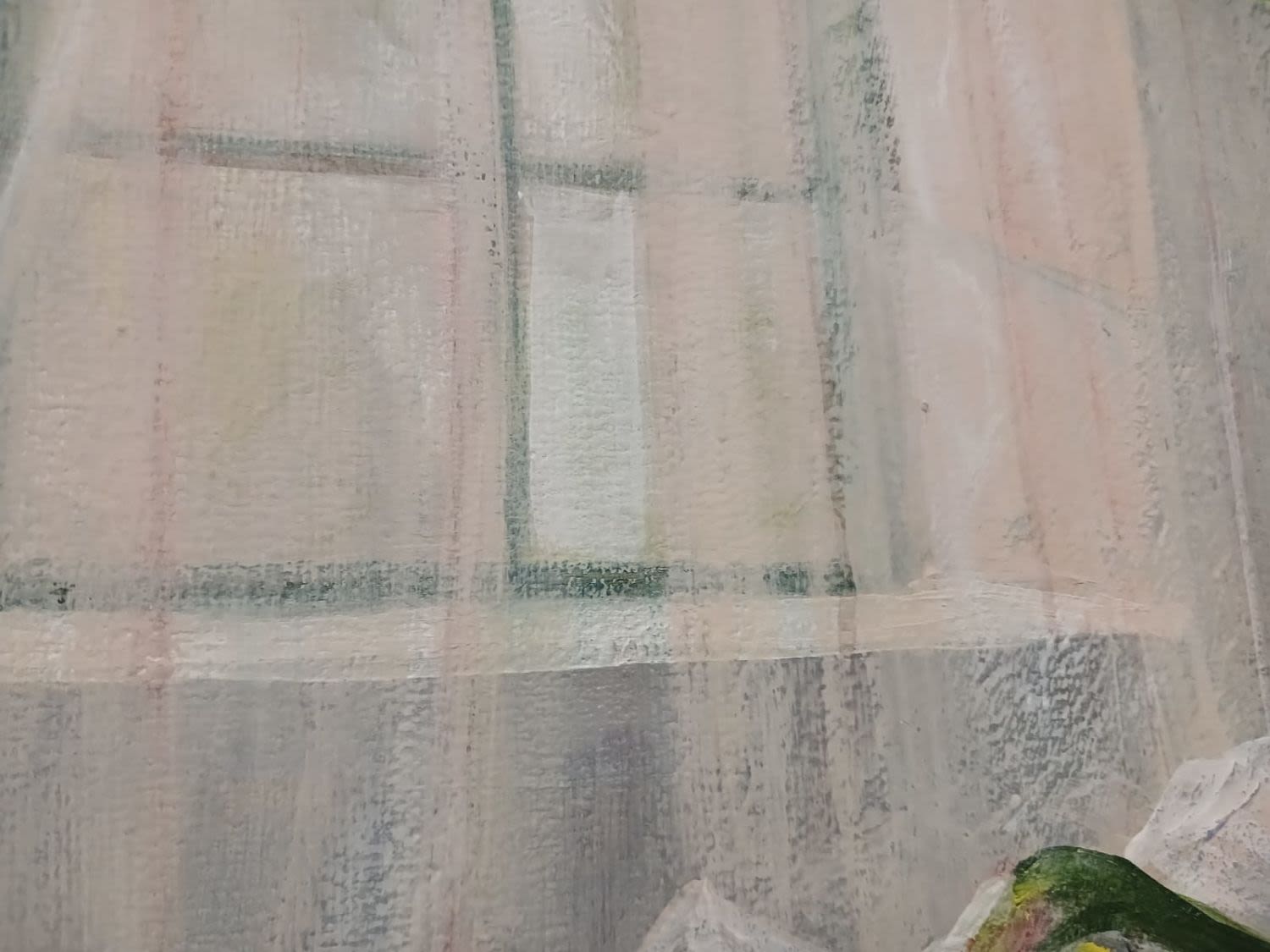 Capturing a tranquil moment in time. This work features a gracefully arranged vase of St. Joseph Lilies, their pure white petals contrasting beautifully with the rich green leaves. Positioned near an open window, the painting bathes in soft, natural light that gently caresses the delicate flowers. The artist’s initials add a personal touch to this exquisite still life, evoking a sense of serenity and appreciation for the ephemeral beauty of nature.