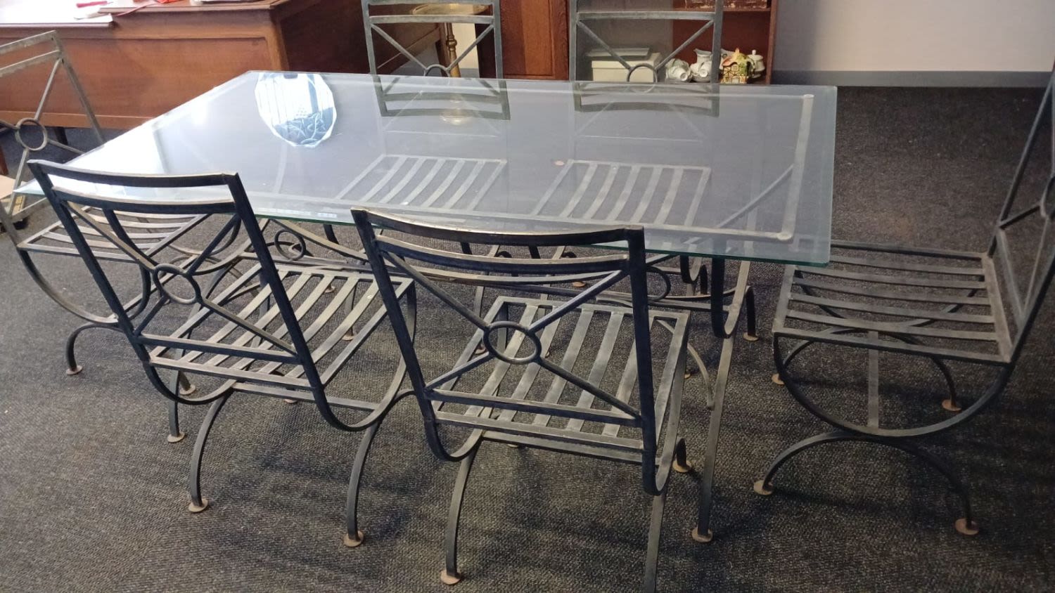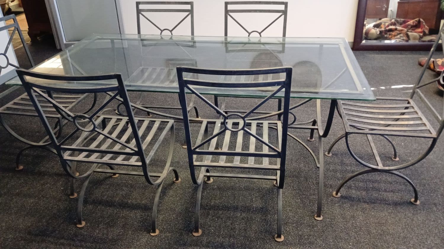 REDUCED: 6-Seater Wrought Iron Glass Topped Dining Table and Chairs.