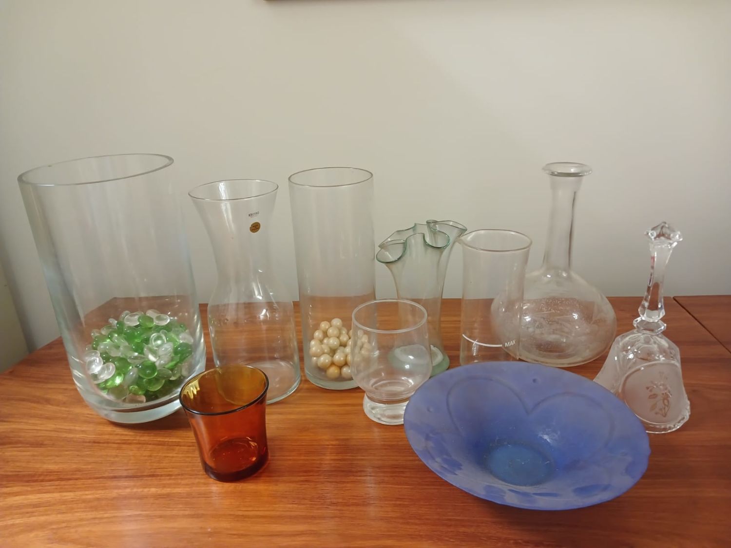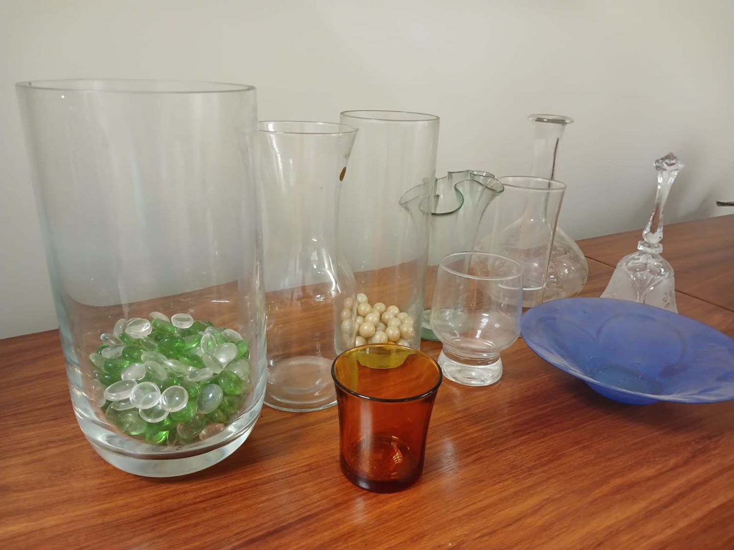 1 Large Clear Glass Vase with Glass Pebbles 26cm H