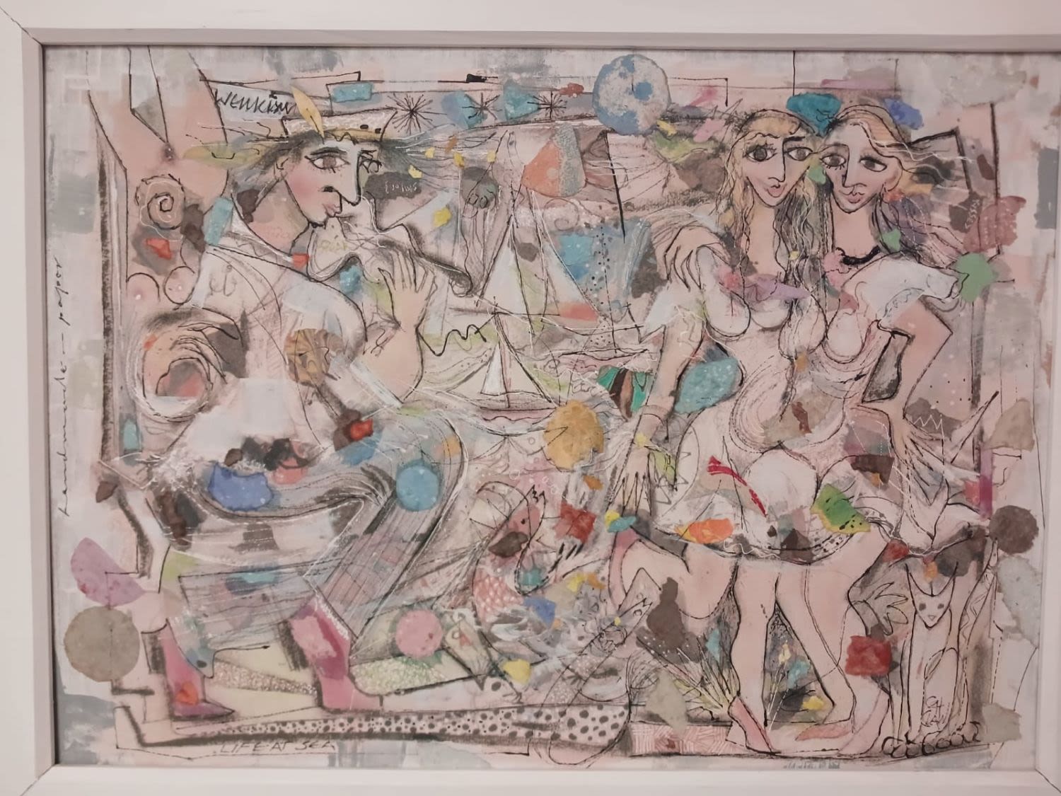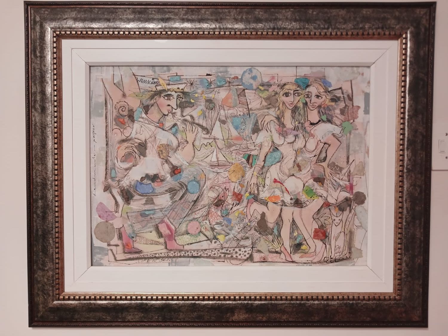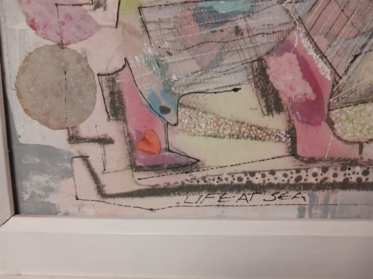 REDUCED: Investment Art By Martin Wenkidu - Mixed Media "Life at Sea", Signed & Titled - 72cm x 52cm - STC.