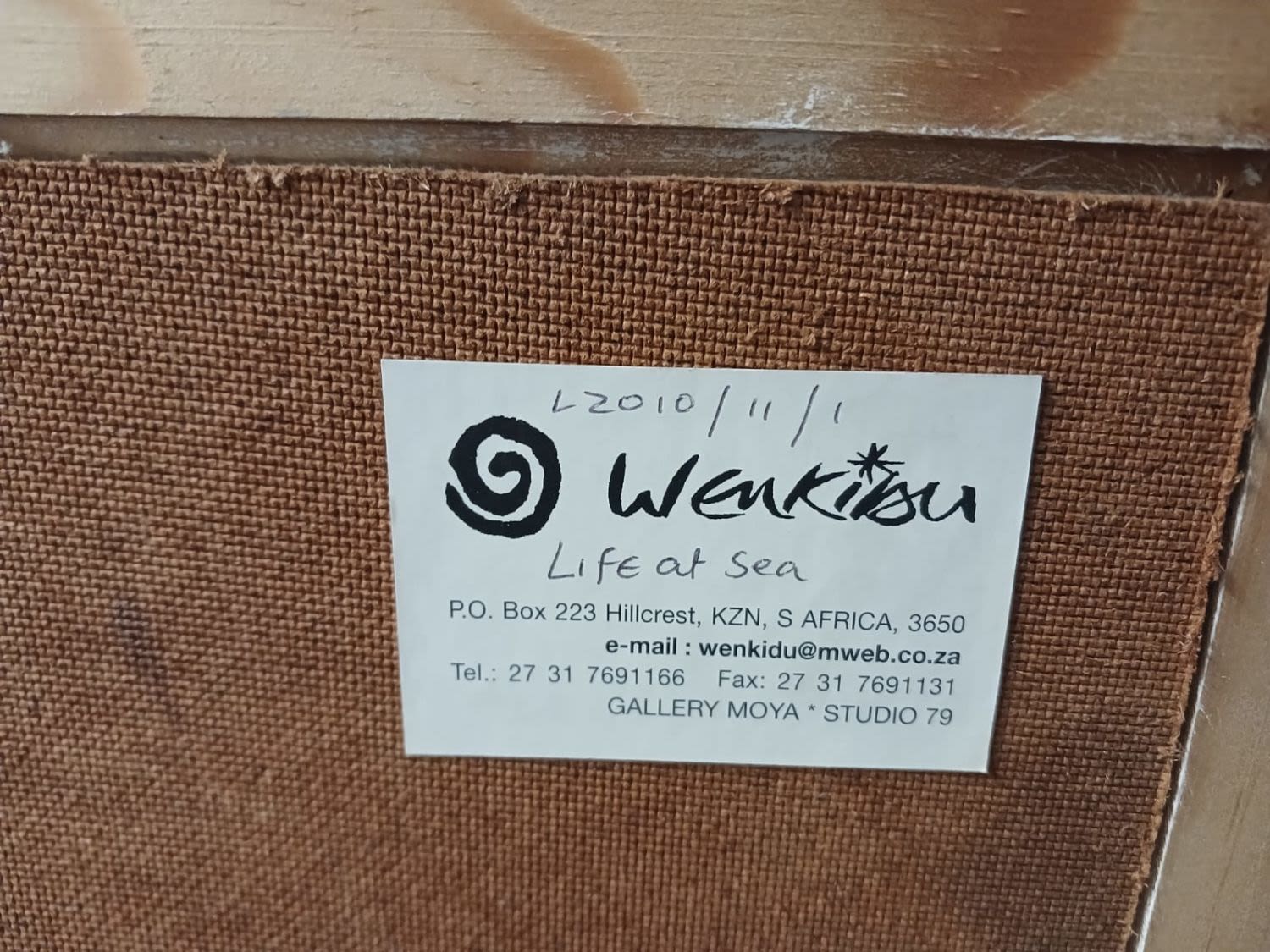 Signed and inscribed with the title. Dated 2010/11/01 on a Gallery Moya * Studio 79 label on reverse.