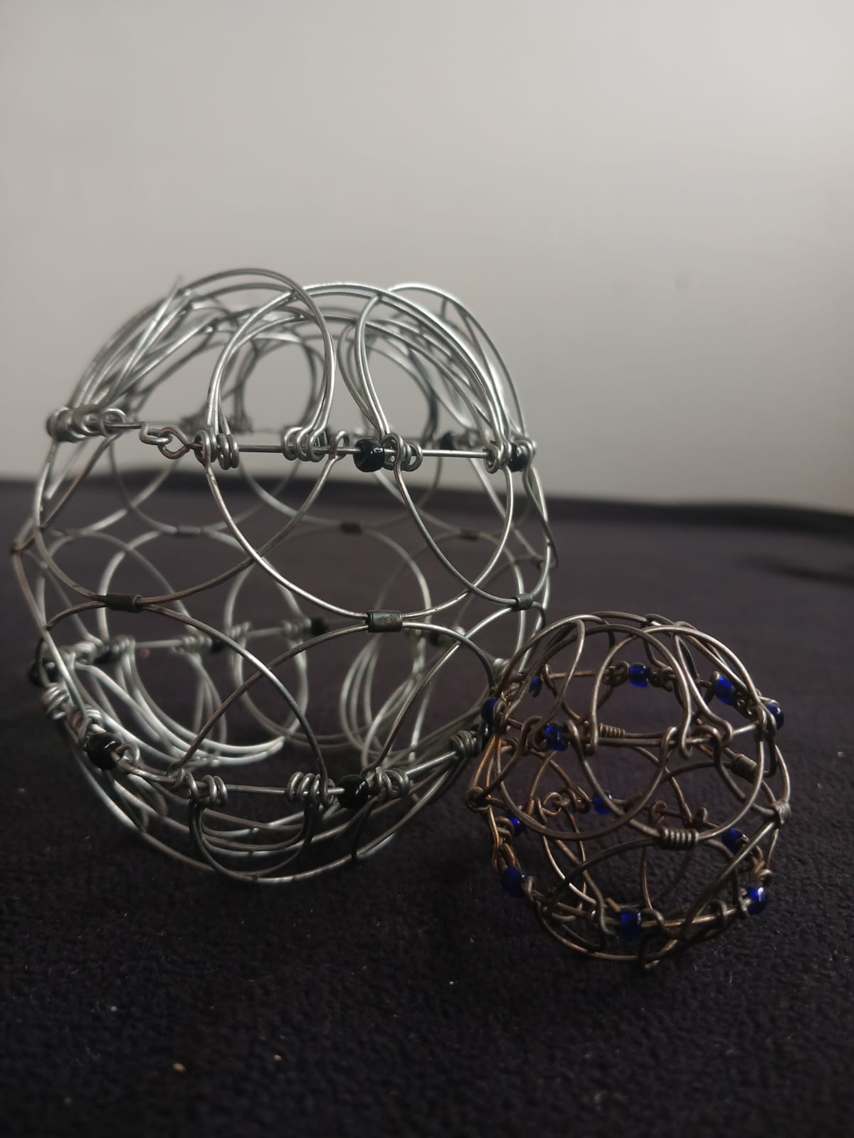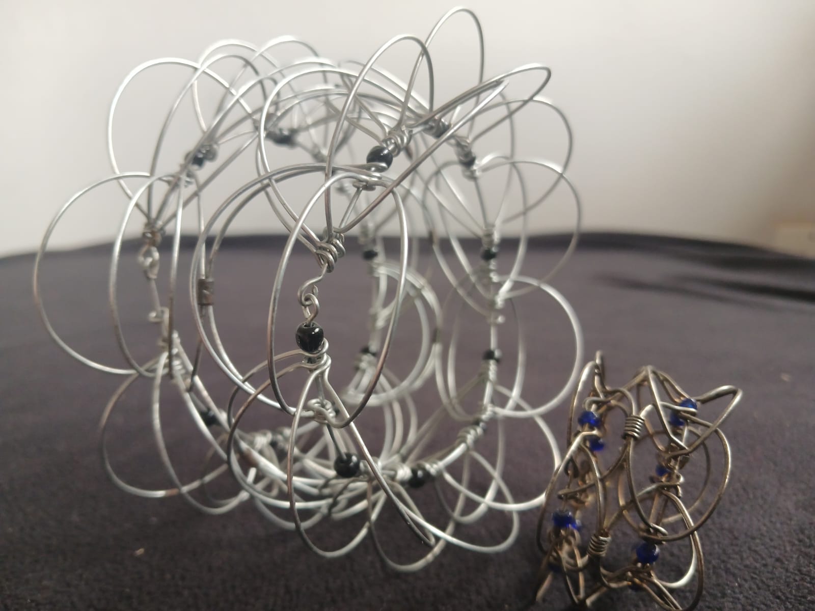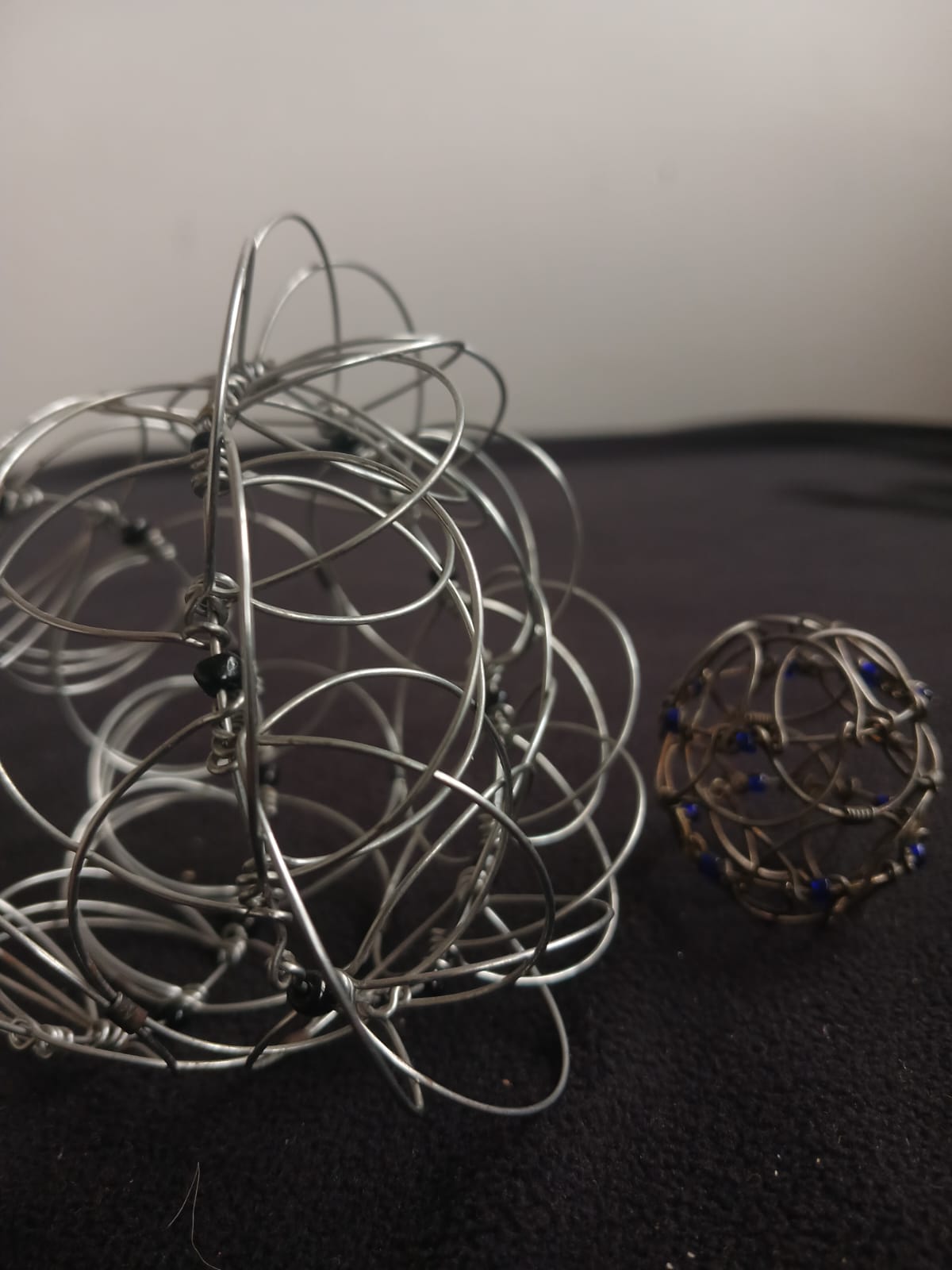 A set of two Mandala Wire Meditation Toys, including one standard size and one miniature version. These unique tactile toys are designed to promote relaxation, focus, and mindfulness through gentle rolling and meditative play.