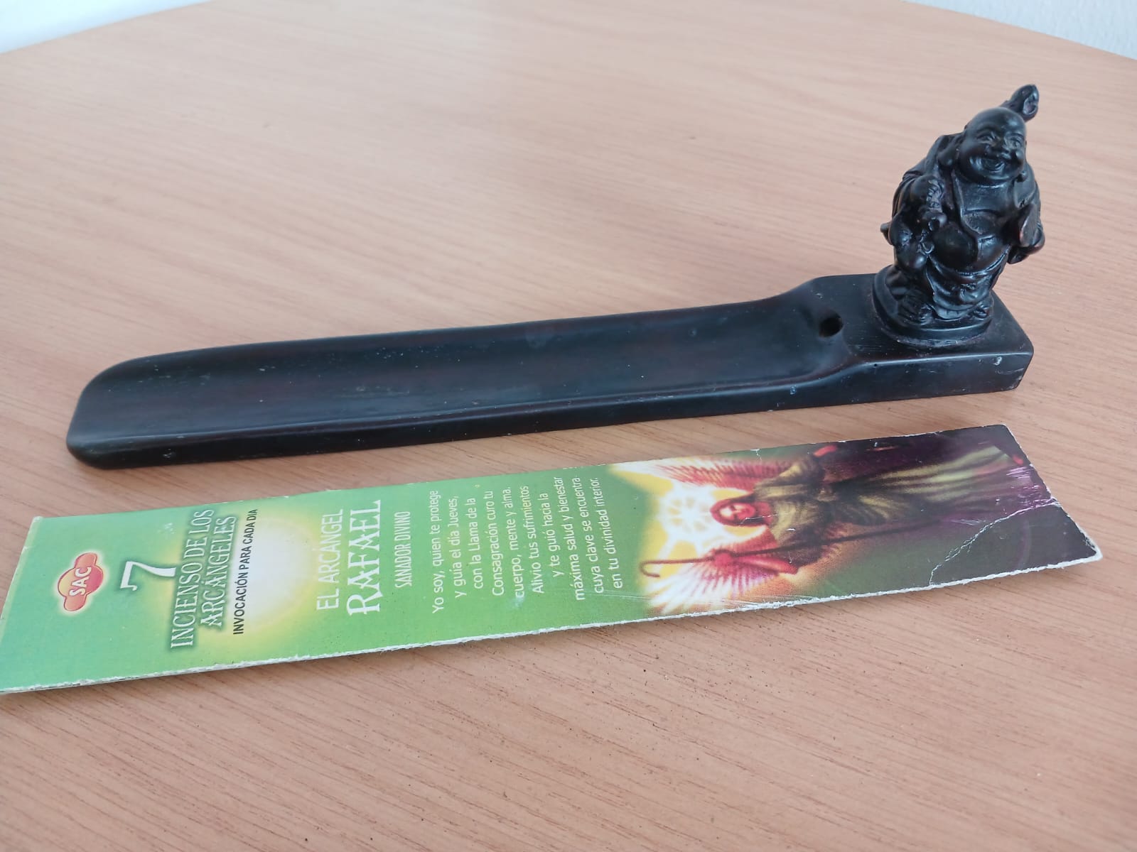 The incense burner has been previously used and shows slight marks from use, but remains fully functional and beautifully symbolic. The included Archangel Rafael incense brings a healing and protective energy, making this a thoughtful addition to any collection of spiritual décor, meditation accessories, or Buddhist-inspired items.