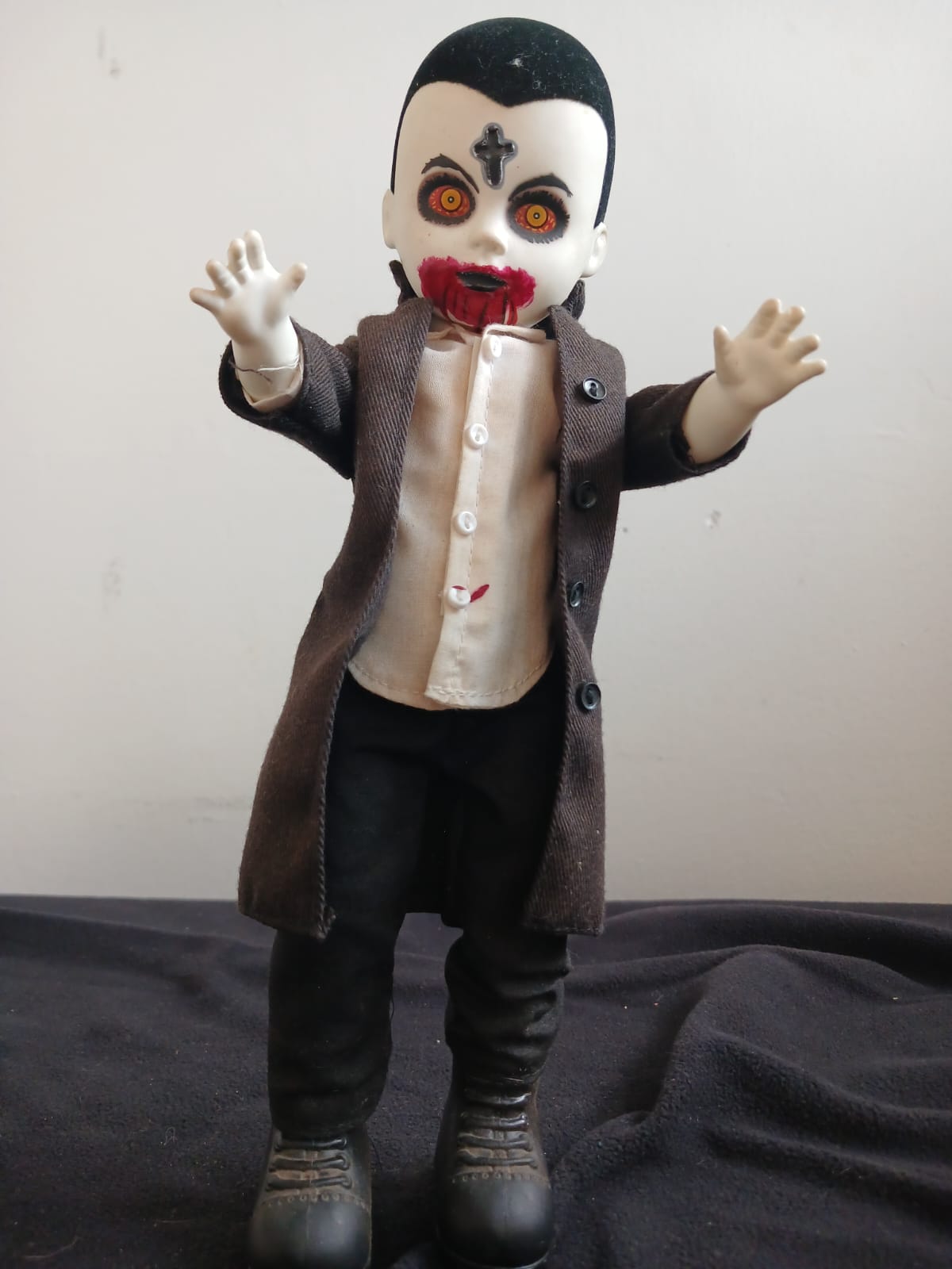 Up for auction is Haemon from the Vampire Series 19 of the Living Dead Dolls by Mezco Toyz, a highly collectible piece from the world-famous LDD horror doll line. Standing approximately 25 cm tall, Haemon is crafted from durable plastic with fabric clothing, making it a sought-after doll for Living Dead Dolls collectors, gothic horror fans, and enthusiasts of vampire-themed memorabilia.