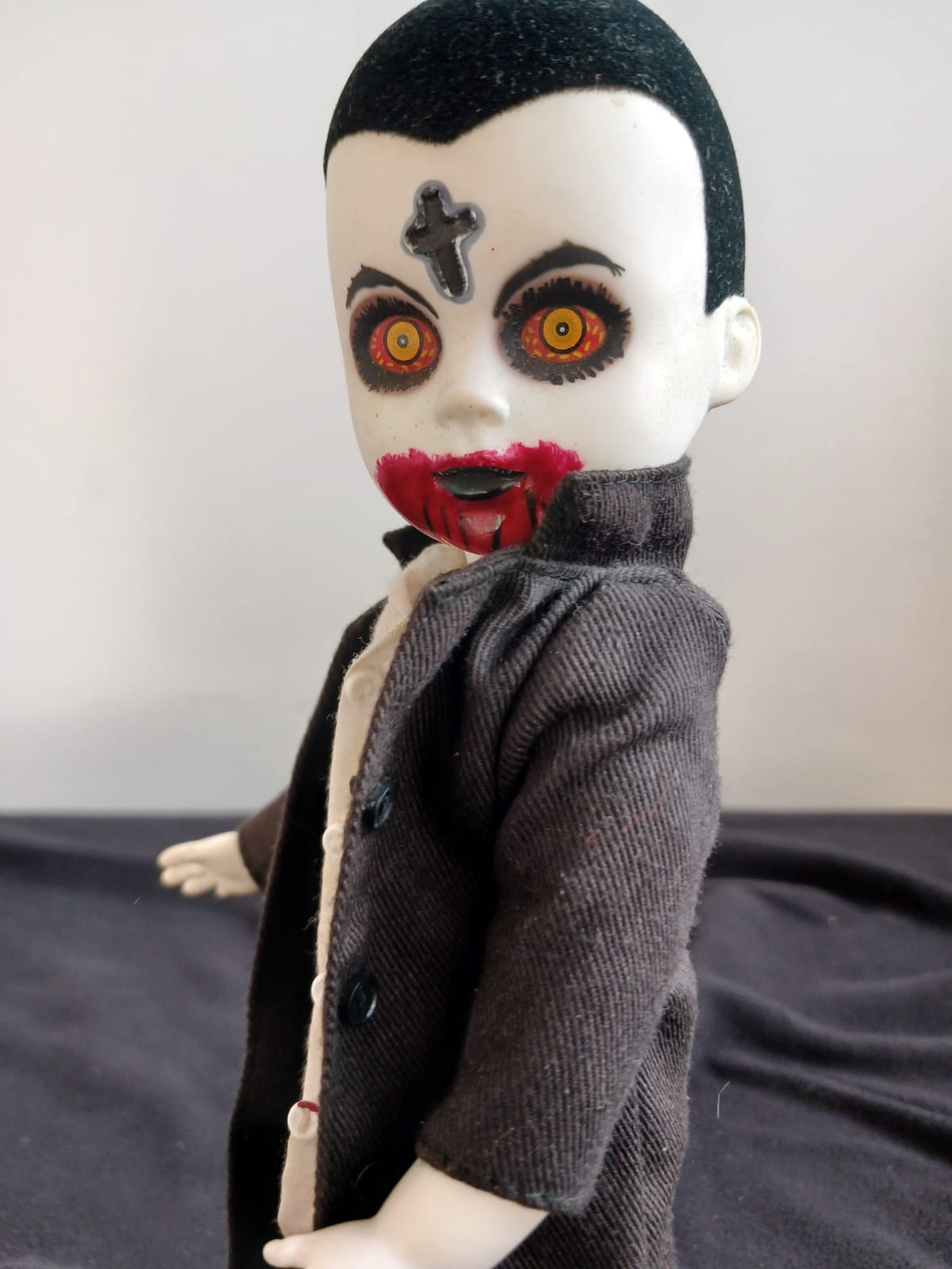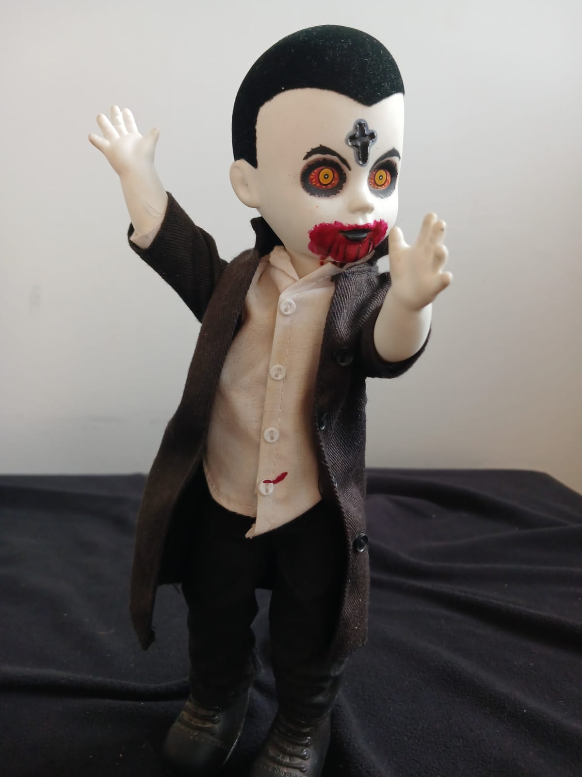 This doll is supplied without accessories and without original coffin packaging, but it remains a striking addition to any Living Dead Dolls or horror toy collection. Mezco Toyz’s Series 19 was themed around vampires, making Haemon a particularly desirable character among fans of dark collectibles.