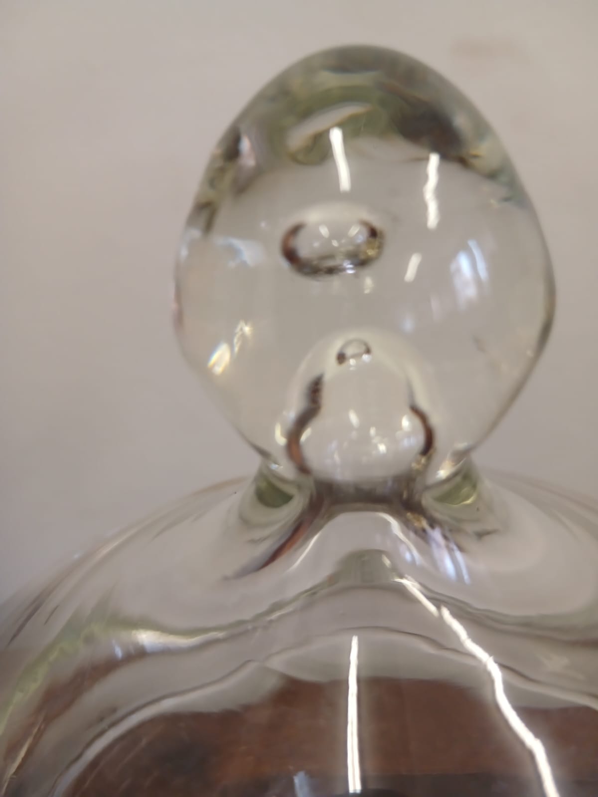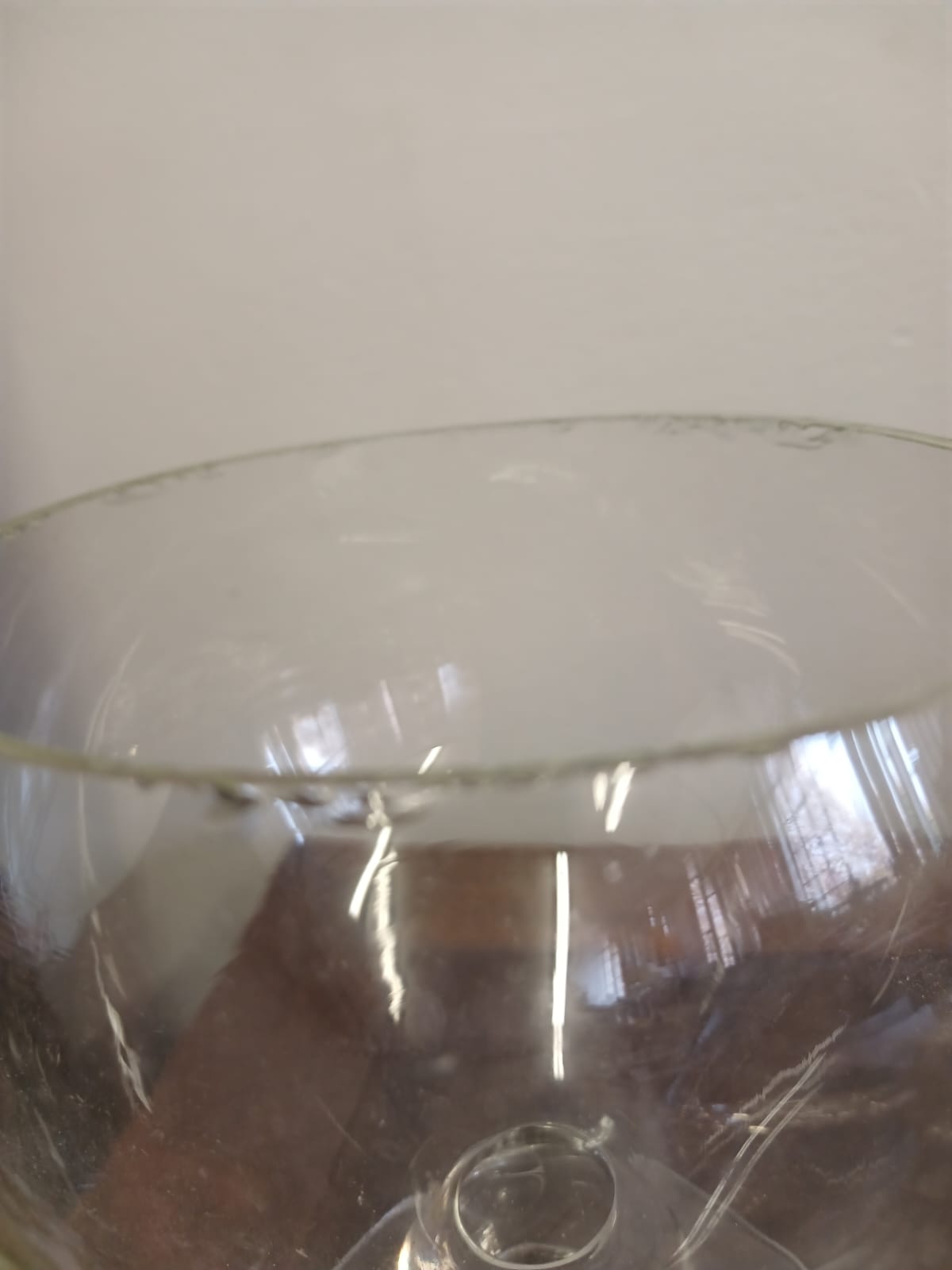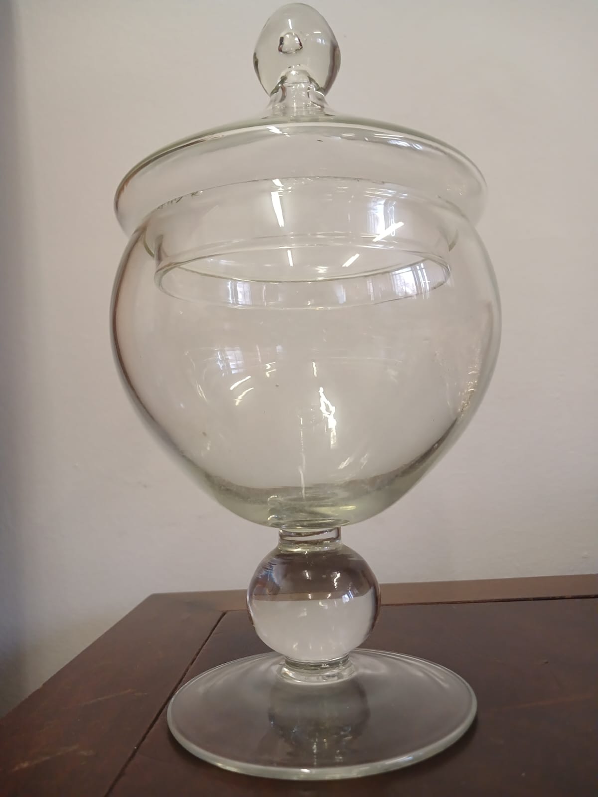 This hand-blown candy dish stands 26cm tall & 14cm diameter. With pontil mark on the base