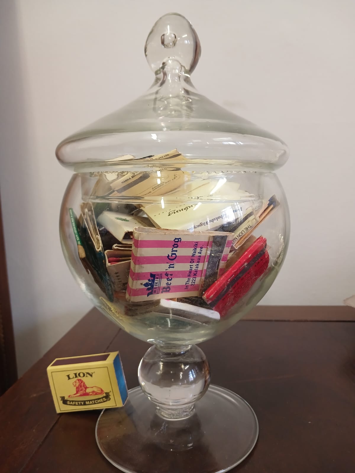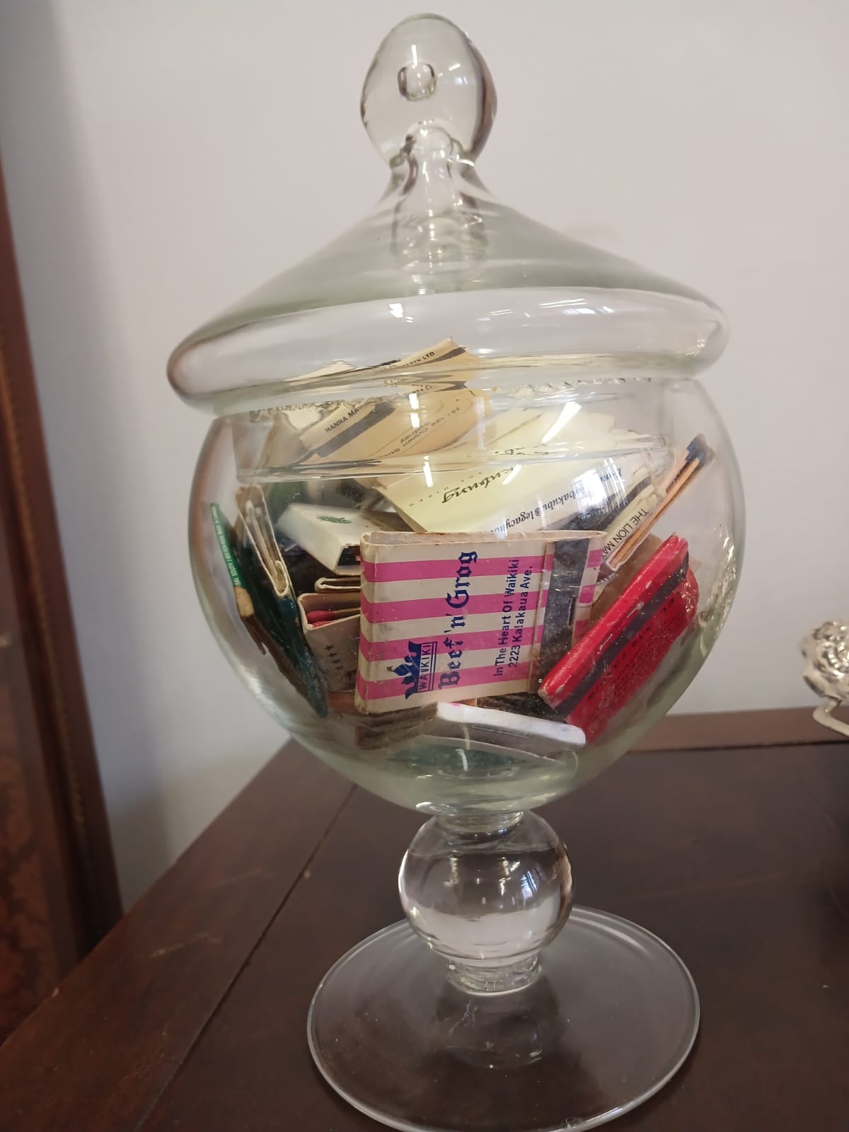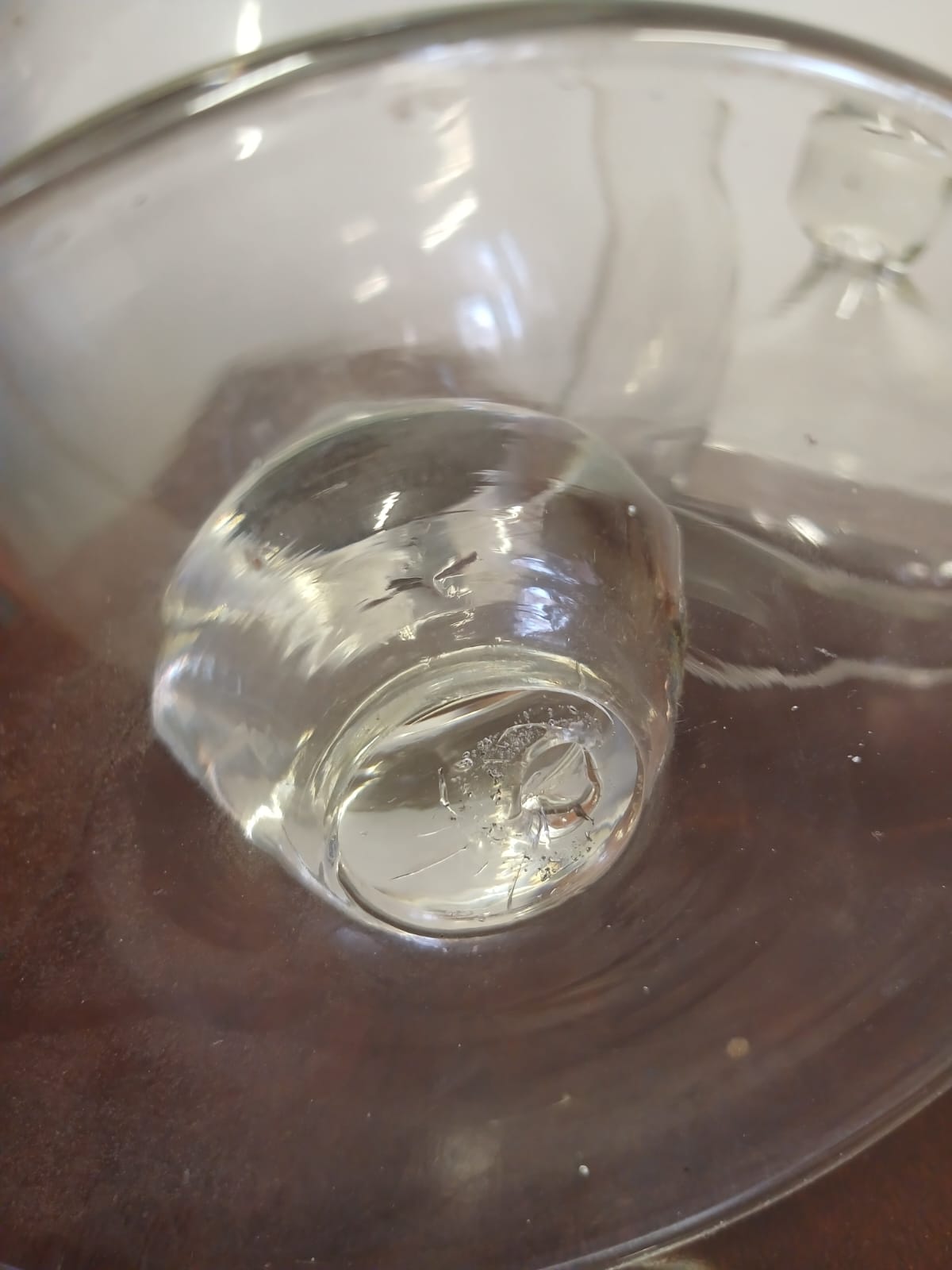 This hand-blown candy dish stands 26cm tall & 14cm diameter. With pontil mark on the base