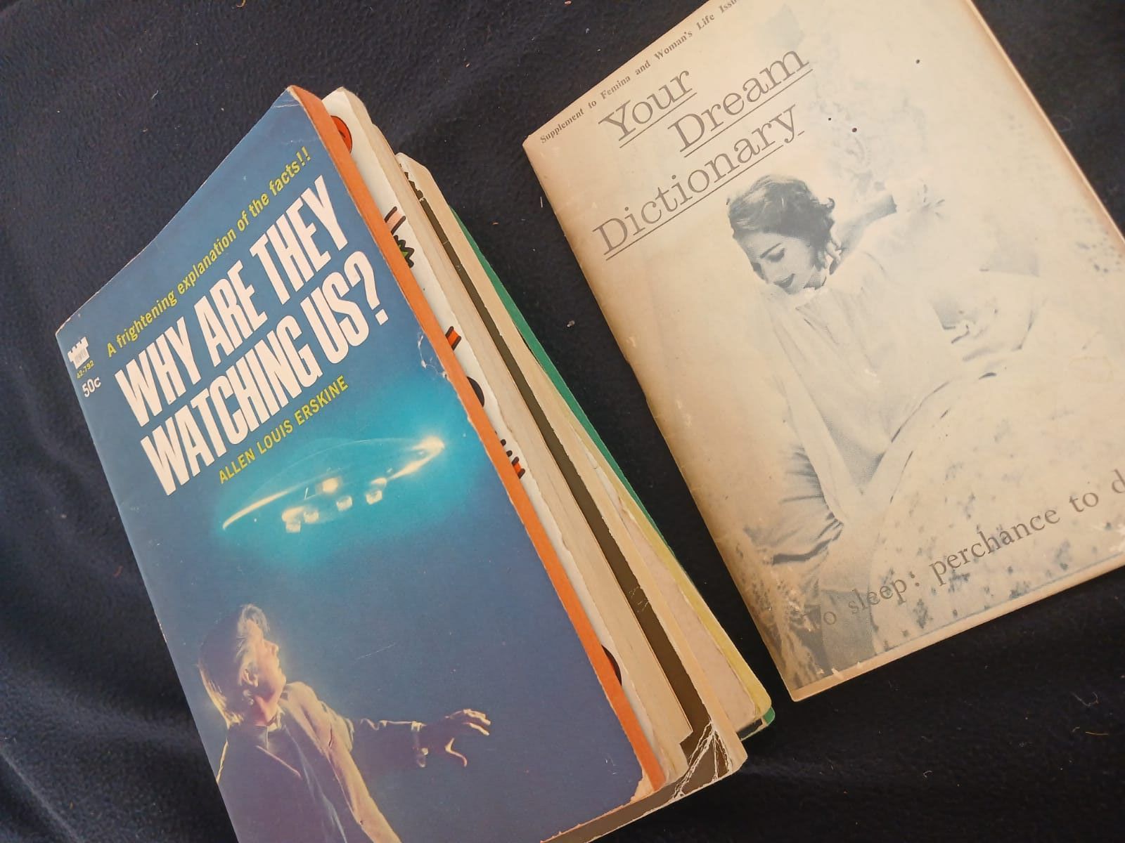 Up for auction is a lot of 6 vintage books and a magazine supplement spanning psychology, dreams, spirituality, and the unexplained, perfect for collectors of esoteric literature, psychic studies, and spiritual publications. This curated collection offers insights into dream interpretation, perception, prophecy, and alternative thought from mid-20th-century authors.