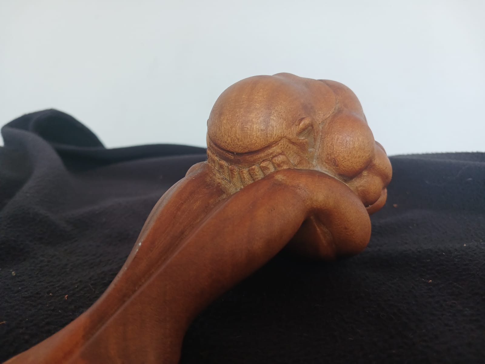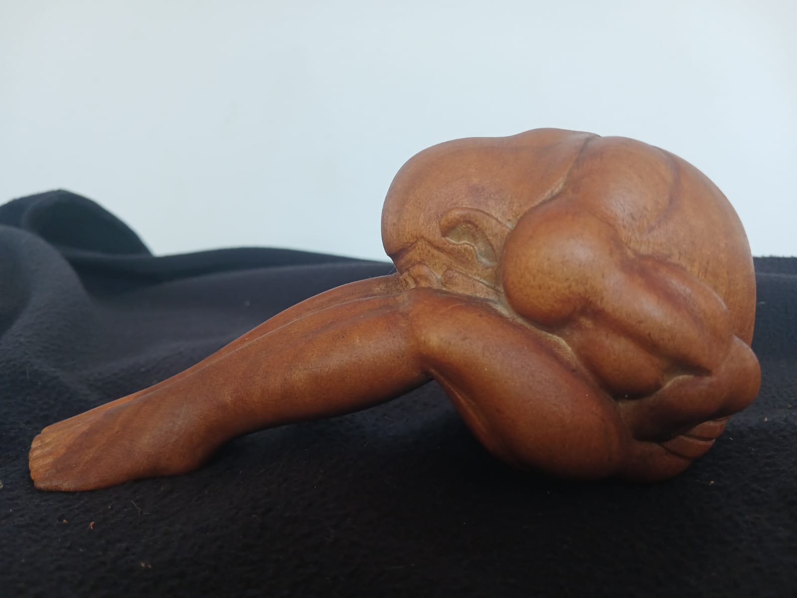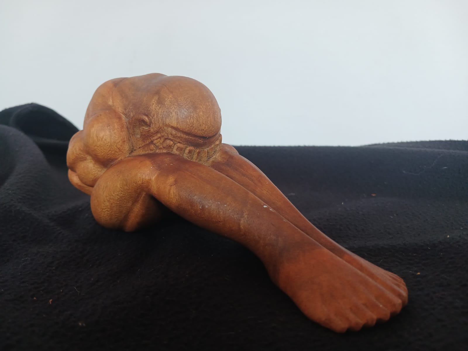 Up for auction is a hand-carved wooden Yogi statue, depicting a Weeping Buddha with stretched out legs. Measuring approximately 16 cm in length, 7 cm wide, and 8 cm tall, this finely crafted piece is perfect for collectors of Buddhist art, spiritual décor, and handcrafted wooden figurines.