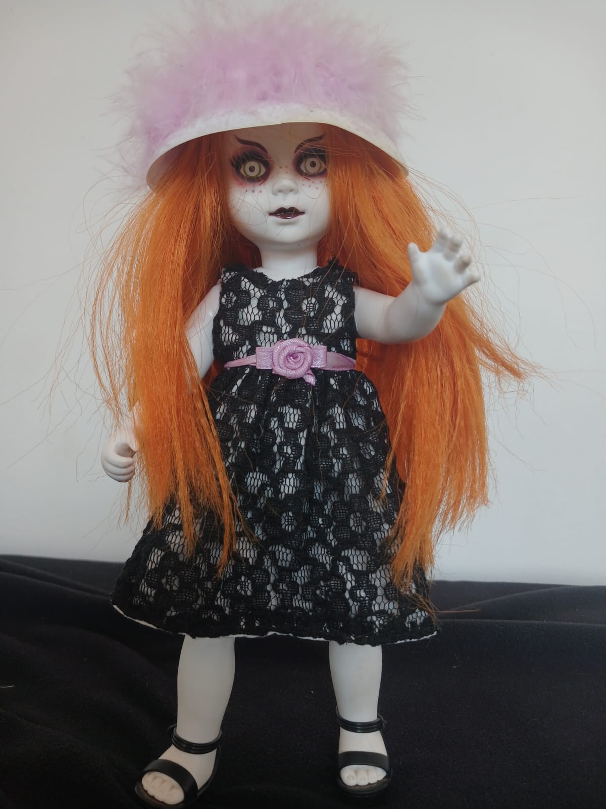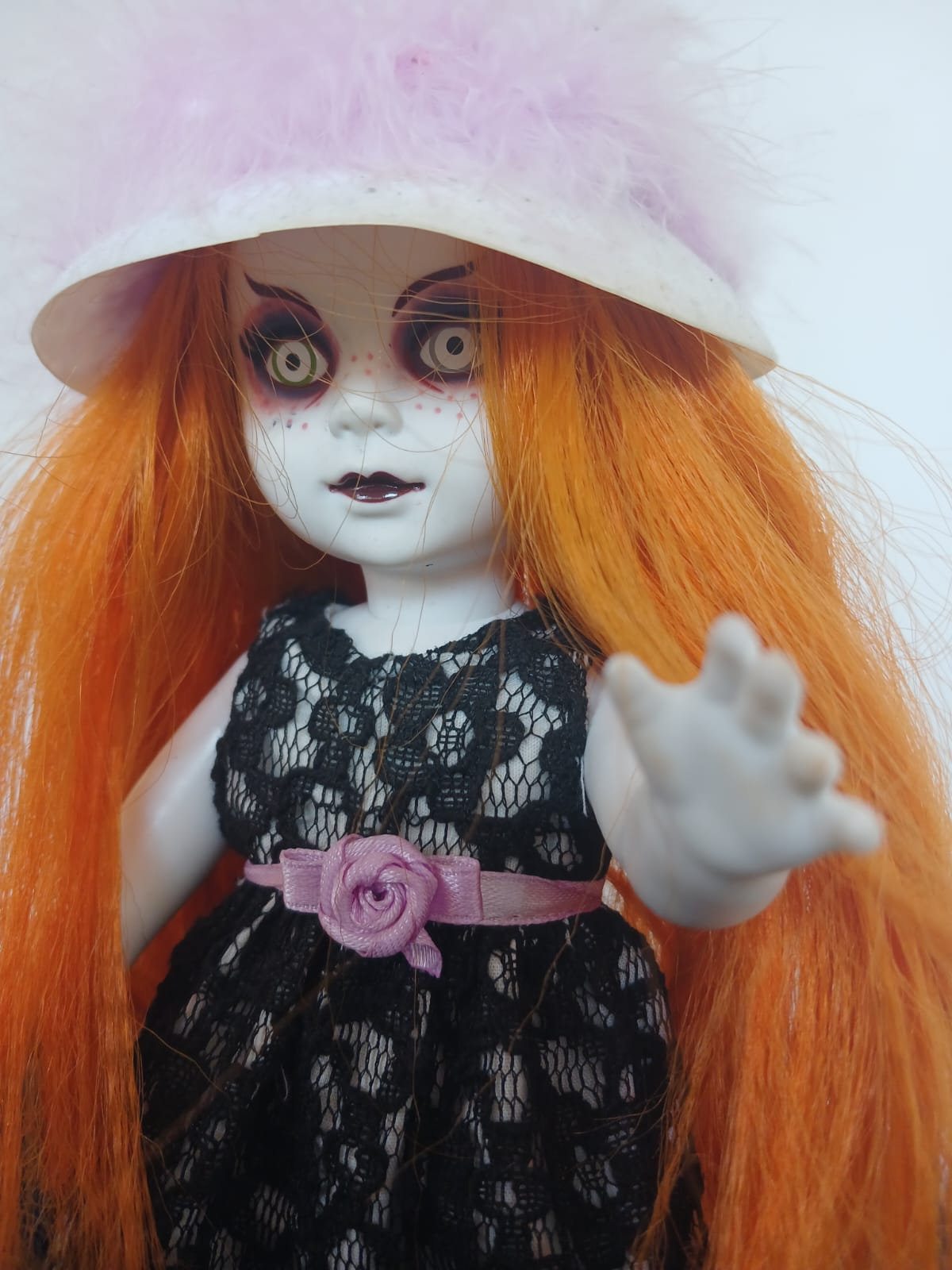 This Betsy doll is supplied with her original hat (note: minor damage present) but comes without other accessories or coffin packaging. Despite this, she remains a desirable piece for collectors of Living Dead Dolls, gothic toys, and horror memorabilia.