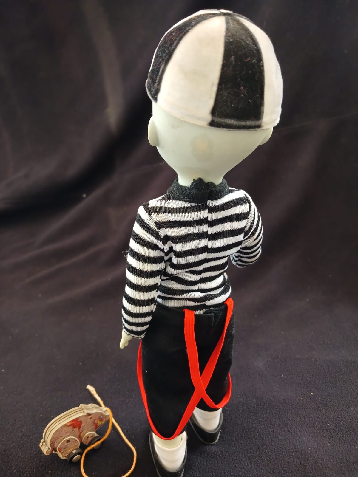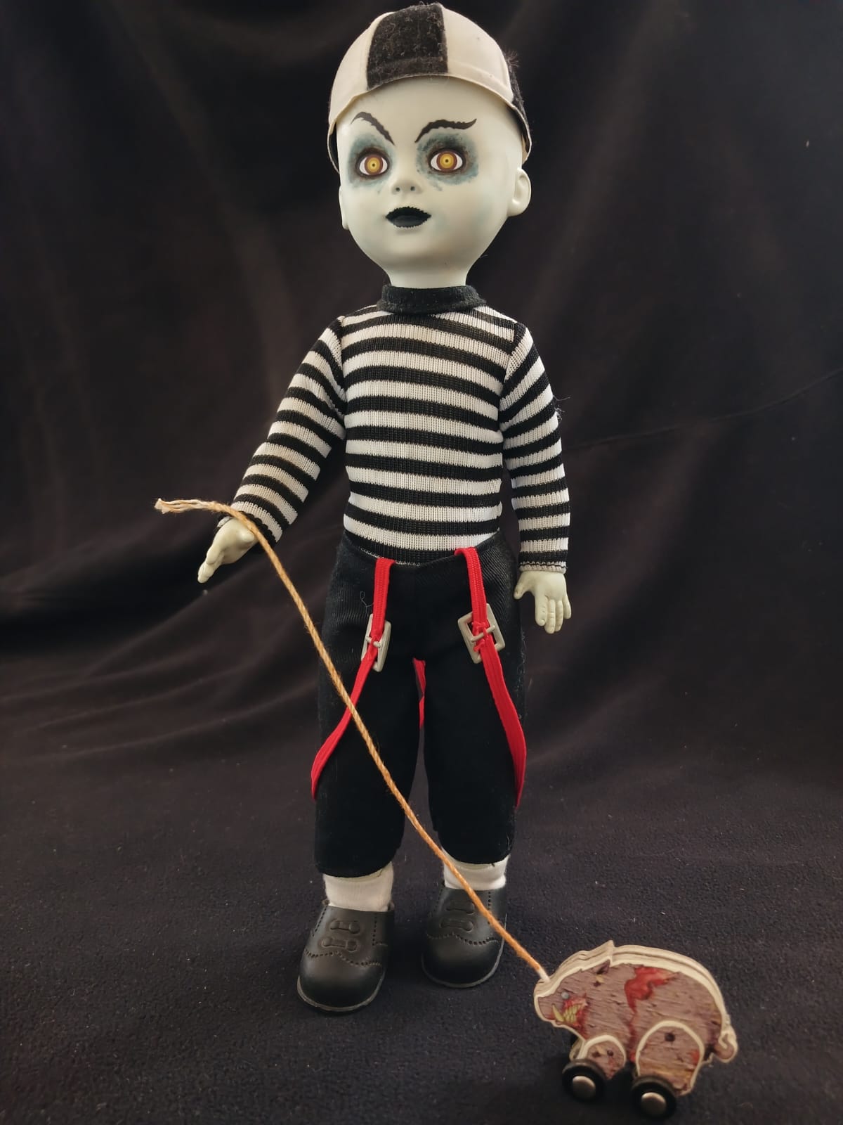 Up for auction is a Living Dead Dolls "Ezekial" collectible doll from Series 12 by Mezco Toyz, a must-have for fans of horror collectibles, gothic toys, and the LDD series. This doll is sold without the original coffin packaging and missing his propeller from his hat but comes with his pig pull toy accessory, making it a great addition to any Living Dead Dolls collection.