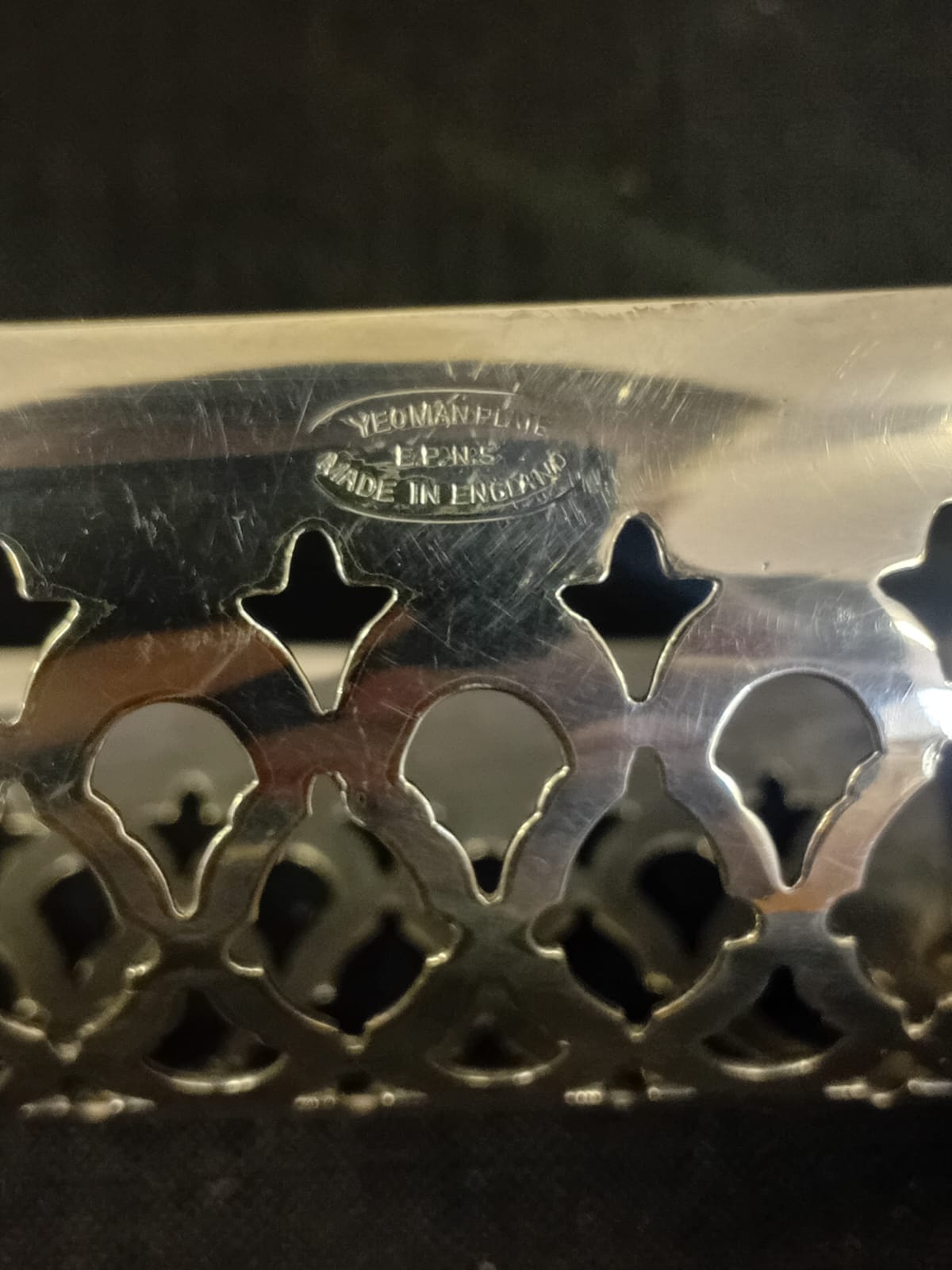 An elegant serving piece crafted by the renowned English silversmiths, Yeoman Plate, known for their quality silver-plated wares.