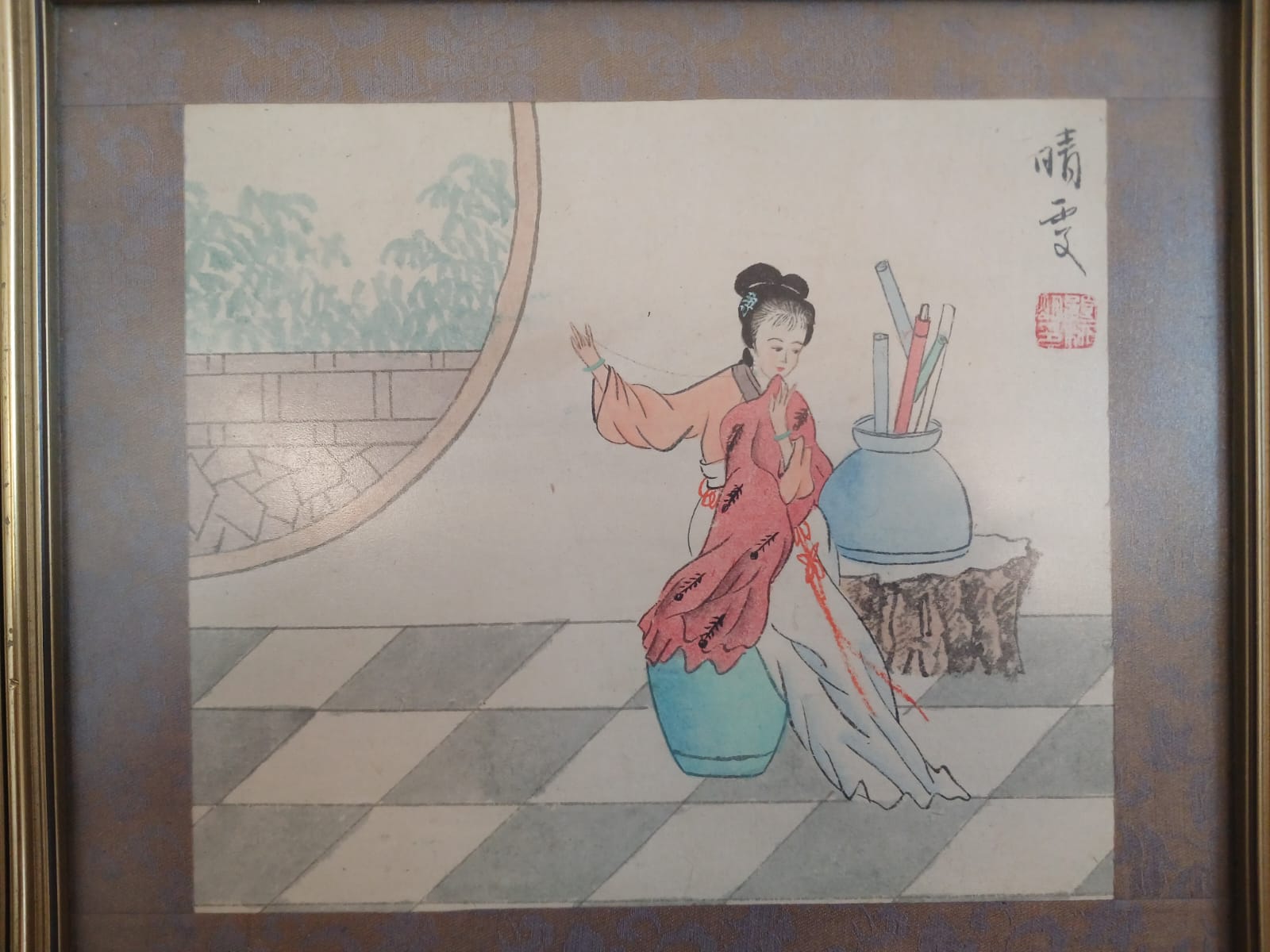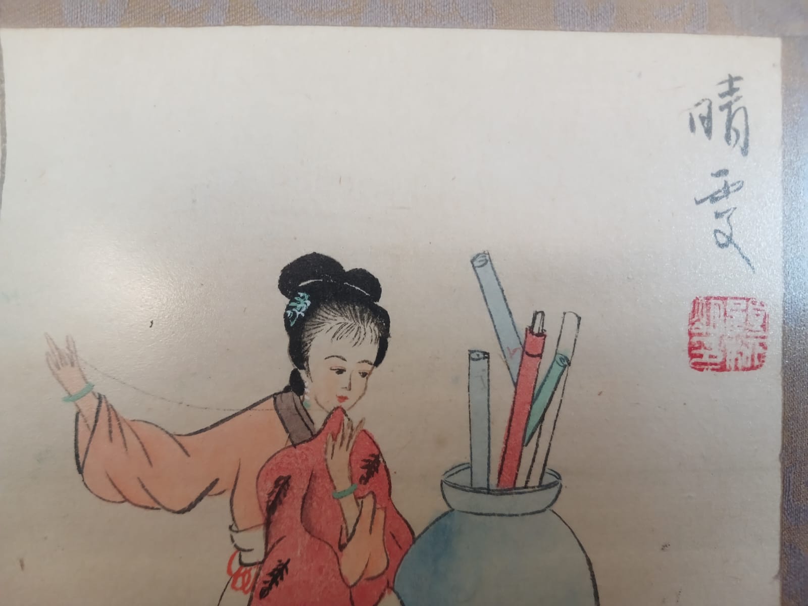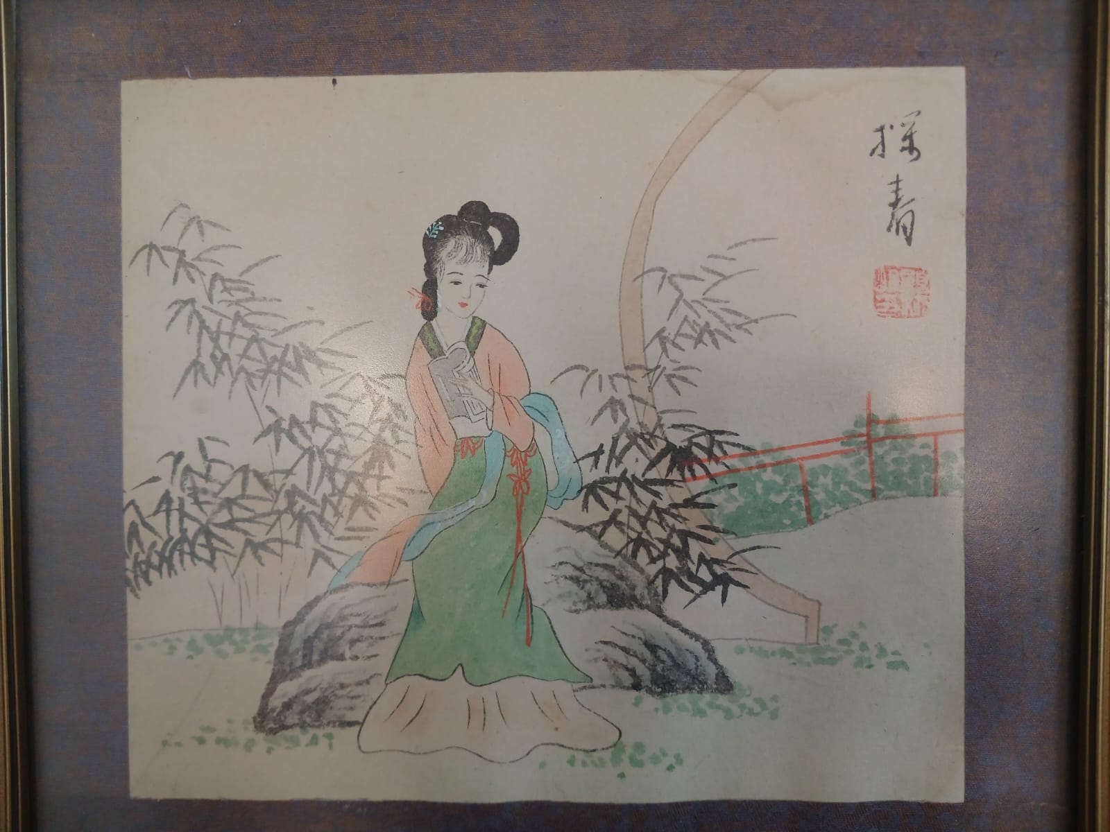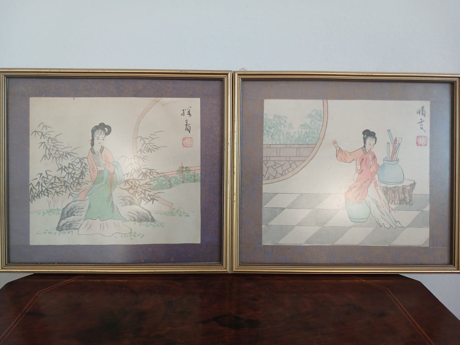 Vintage Japanese Paintings on Paper - Set of 2 - Signed