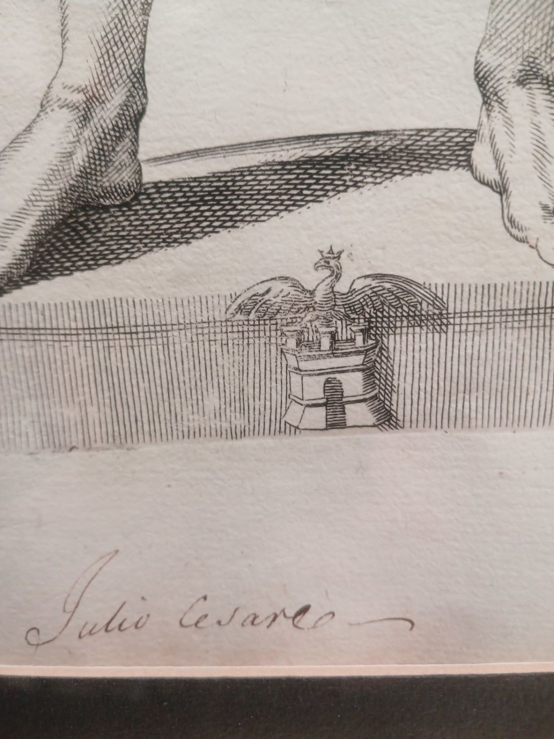 Beautifully Framed Graphic from an Engraving Depicting the Statue of Julius Caesar. Numbered 95 - STC.