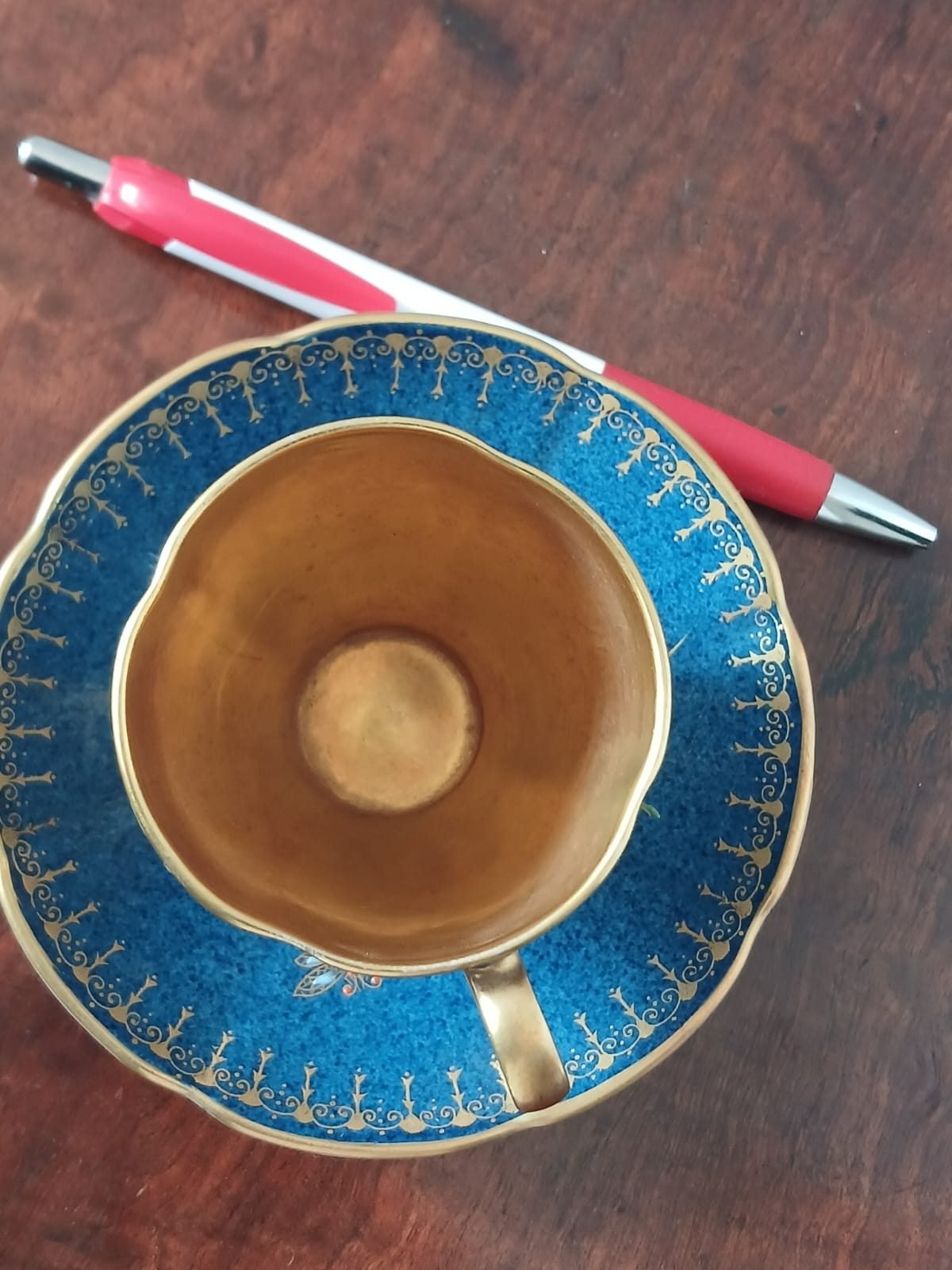 Carlton Ware “Spiderweb” Bleu Royale Demitasse Cup & Saucer Duo – c.1940