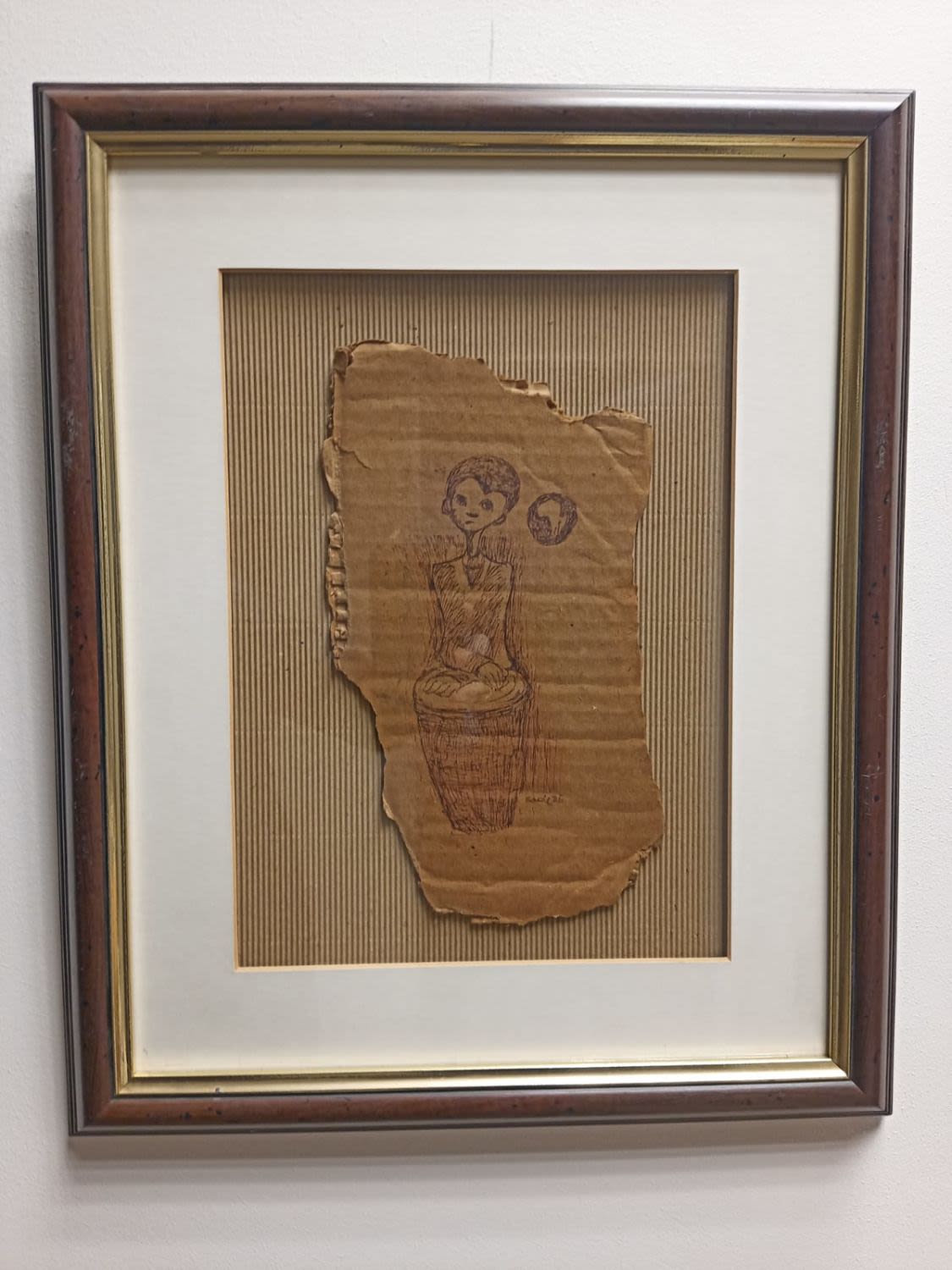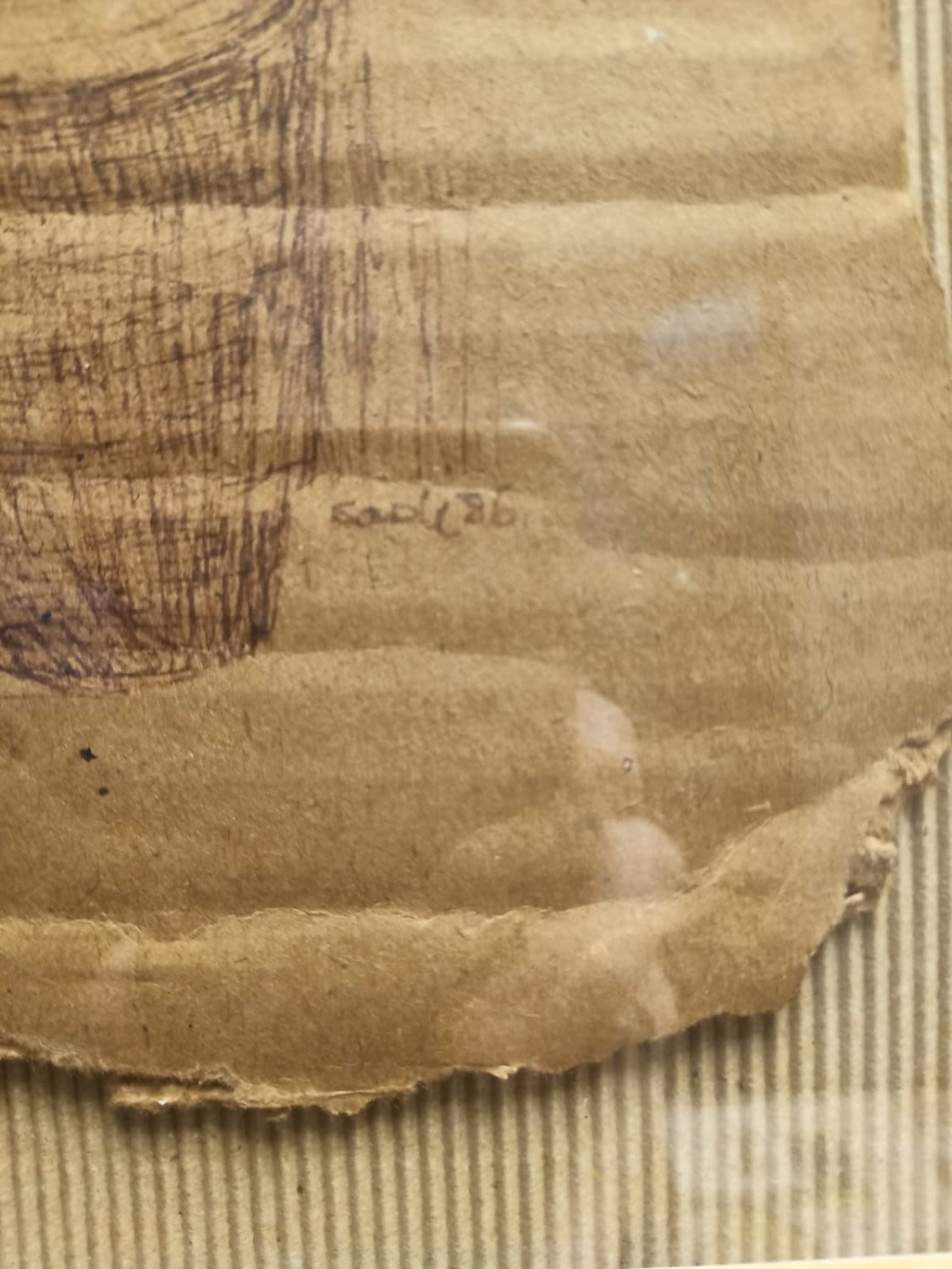 Ink on cardboard, signed and dated 86, In good condition.