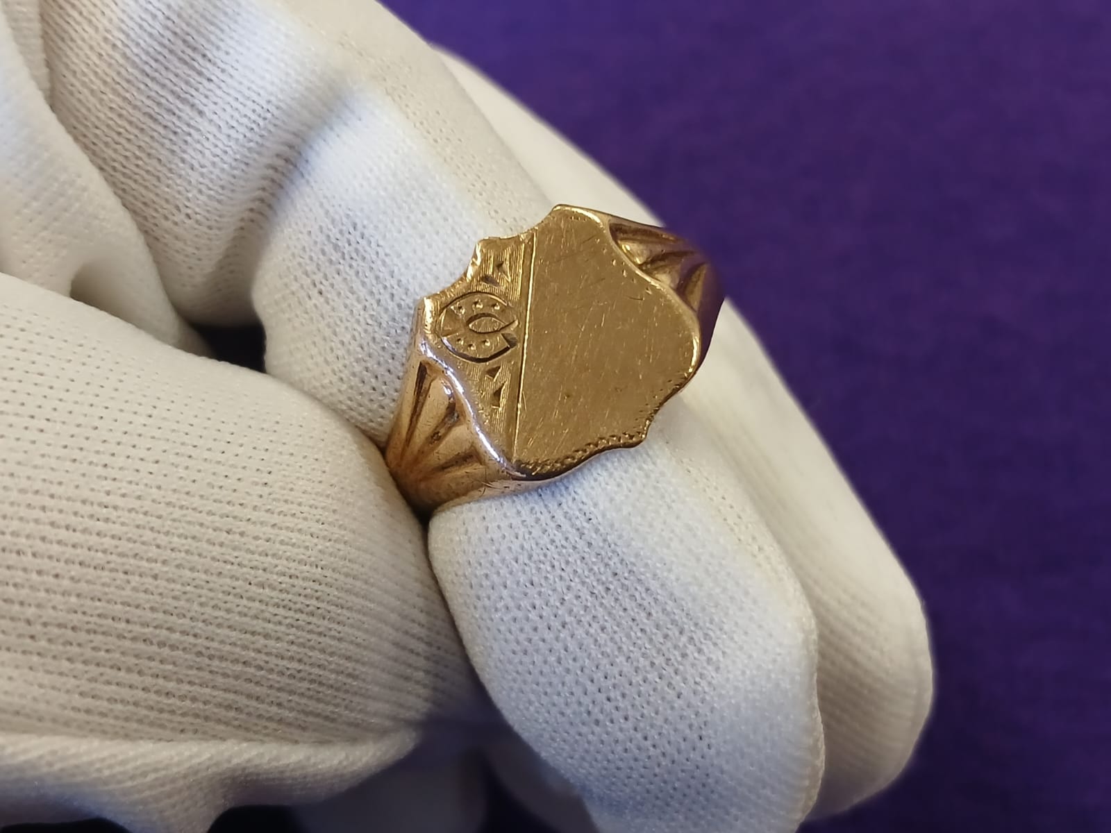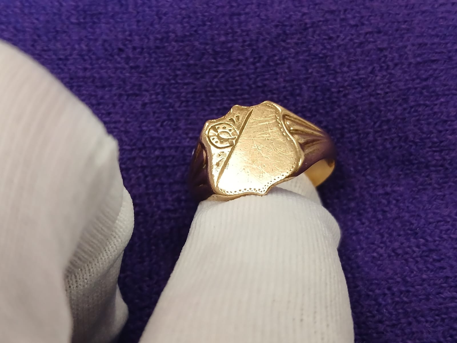 Condition: The ring shows superficial scratches, visible under magnification, typical of age and wear but not detracting from its overall charm.