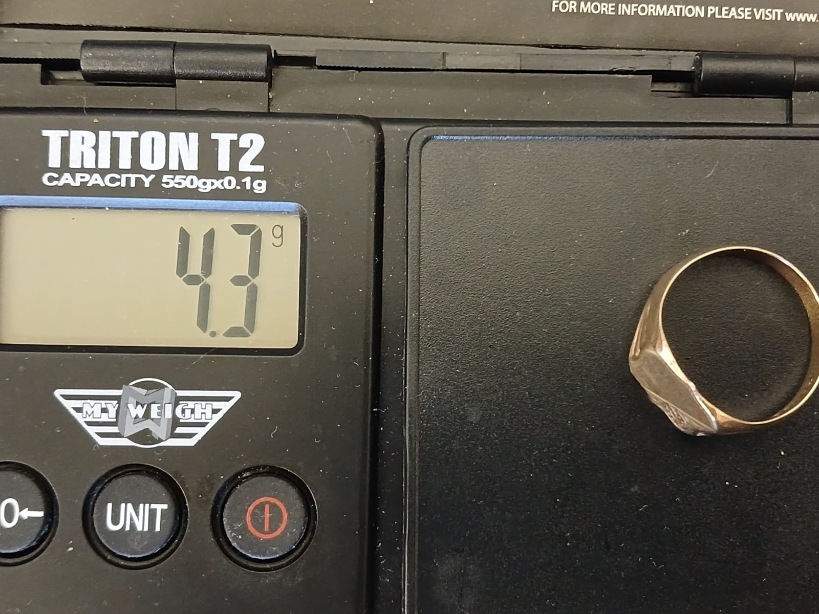 Weight: 4.3g, providing a solid but comfortable feel on the finger.