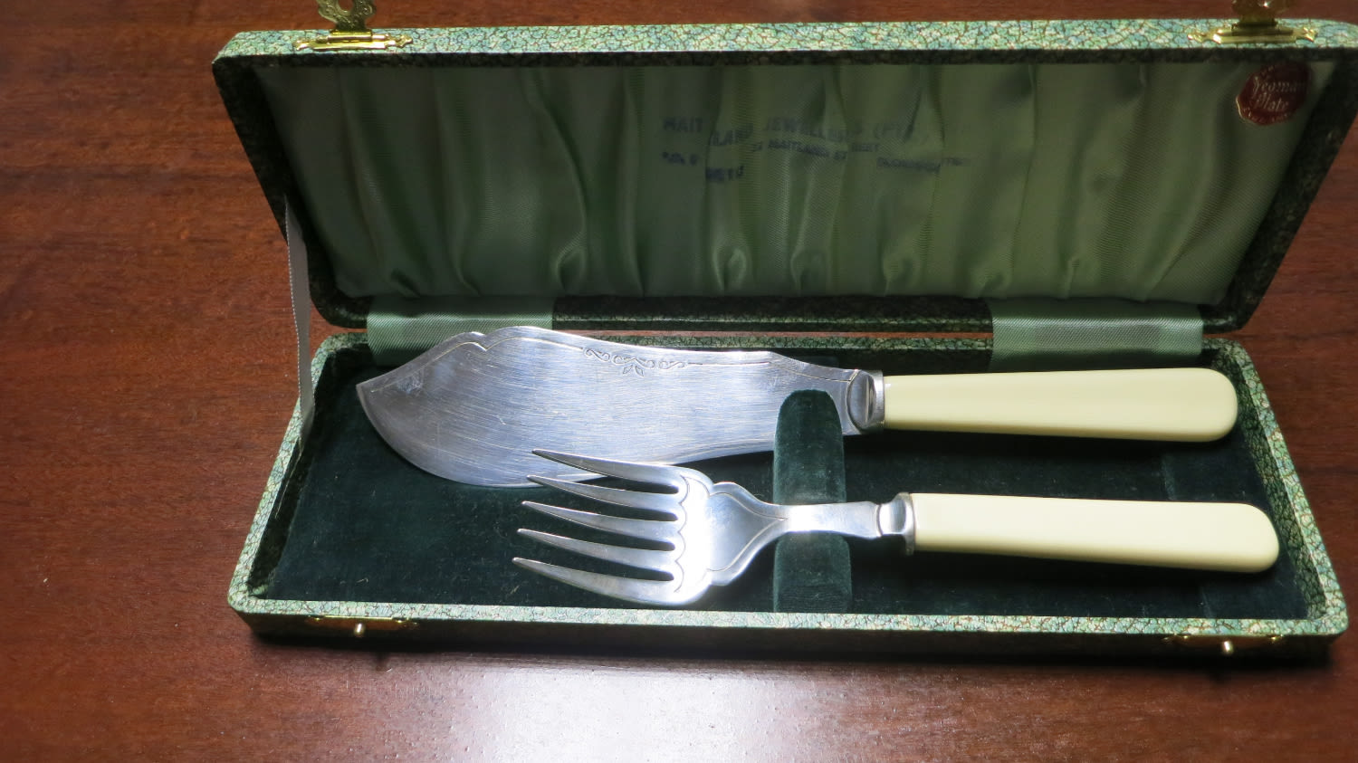 Vintage Silver Plated Fish Serving Set with Ivory Handles stamped "Yeoman Plate – EPNS Made in England"