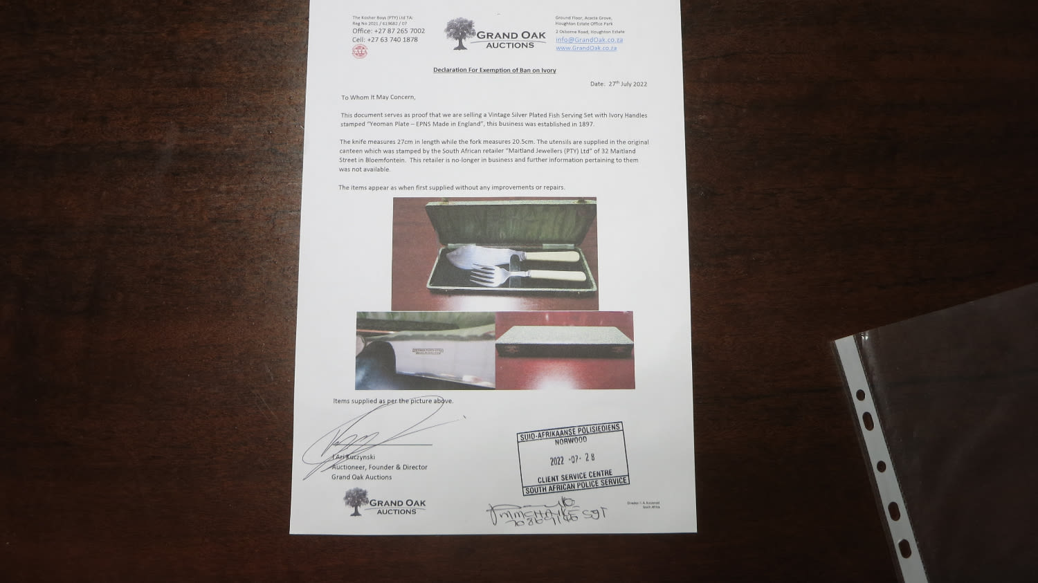 Supplied in original canteen from manufacturer with an affidavit certified by the South African Police Service.