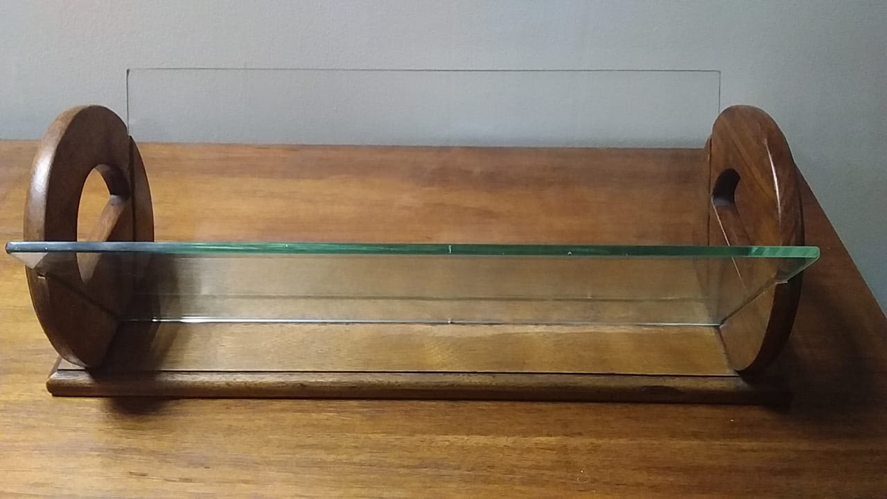 An attractive handmade display piece with removable glass. Please note that the glass is slightly chipped not noticeable when inserted with chips at the bottom but easily replaced. Please view images