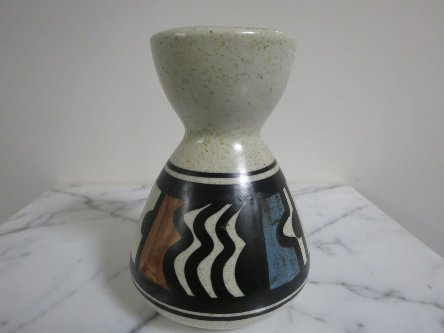 Collectable Modernist Handpainted Lapid Israel Pottery Vase Signed Dan. 14cm Tall