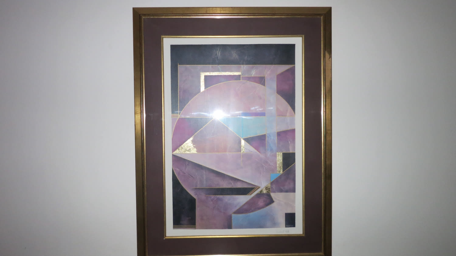 Original Signed Lithograph "Metallic Landscape" by Recognized Artist Framed Measuring 88cm x 116cm