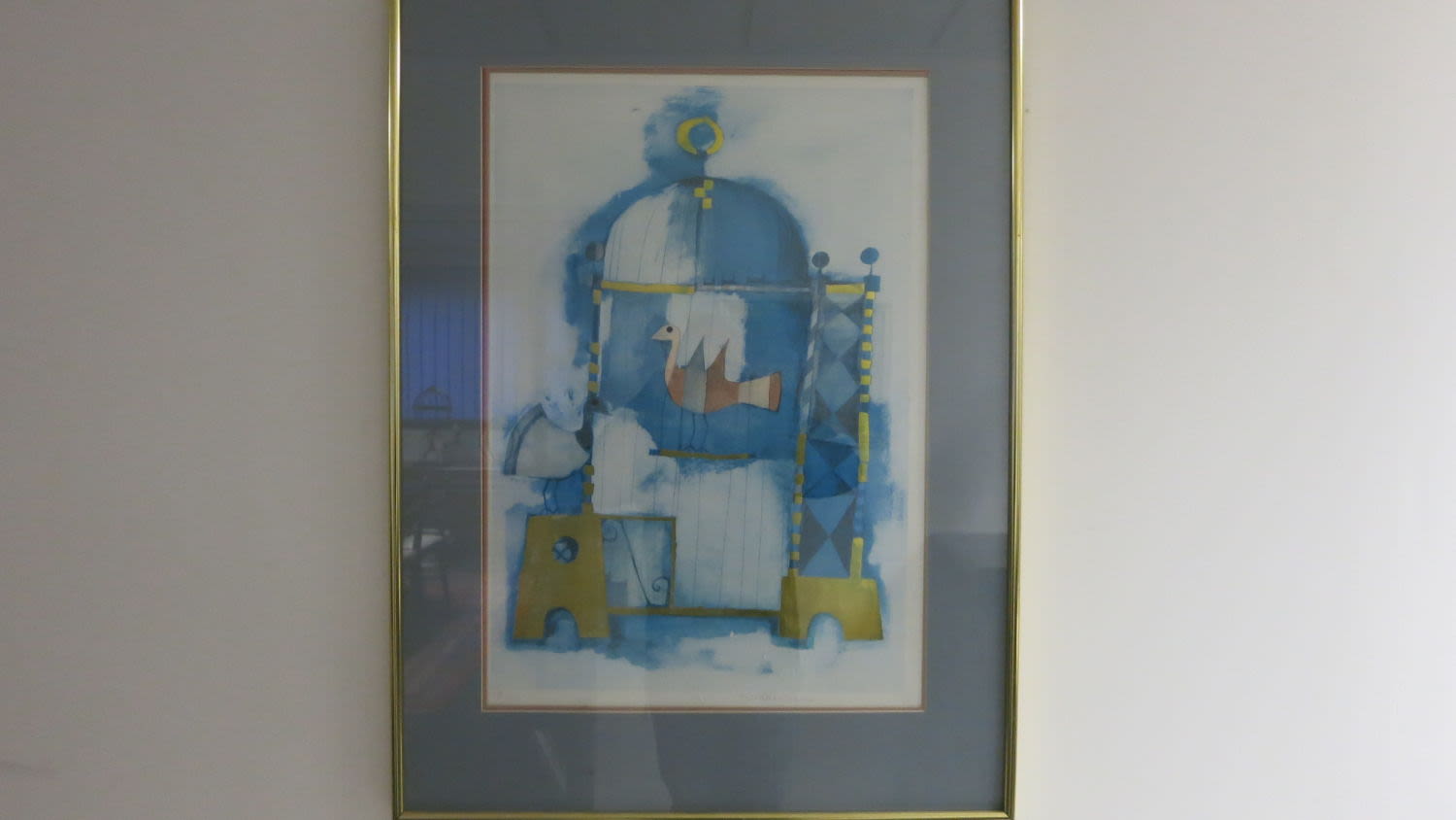 Investment Signed Lithograph "Cage with Bird" (66.5cm x 90cm) by Rosina Wachtmeister