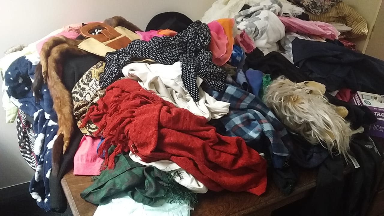 Mainly used ladies clothes, includes pajamas, blouses, scarfs etc. 5 Black Bags A new item or 2 in the bundle + curtains, some cushions, handbags and more