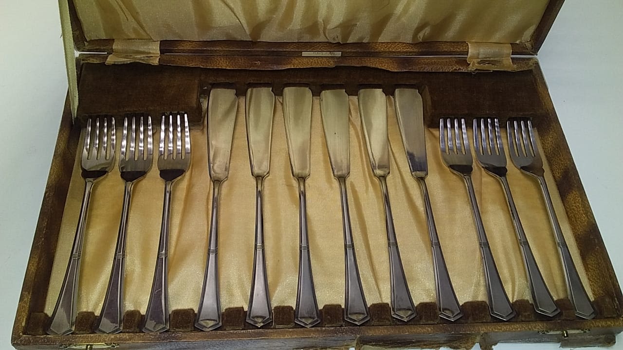 6 Place setting. Made in England, EPNS. Cutlery in good condition the canteen reflects the true age of this set