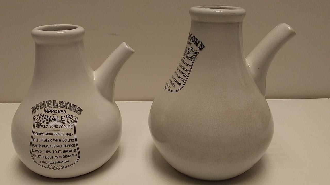 Between 1861 and 1865, Dr Nelson invented his Improved Inhaler for steam inhalations for respiratory ailments. It was produced by S. Maw & Son in London and was a simple, efficient and affordable device that was used widely. It was particularly useful in the home and was later made by other ceramic companies.