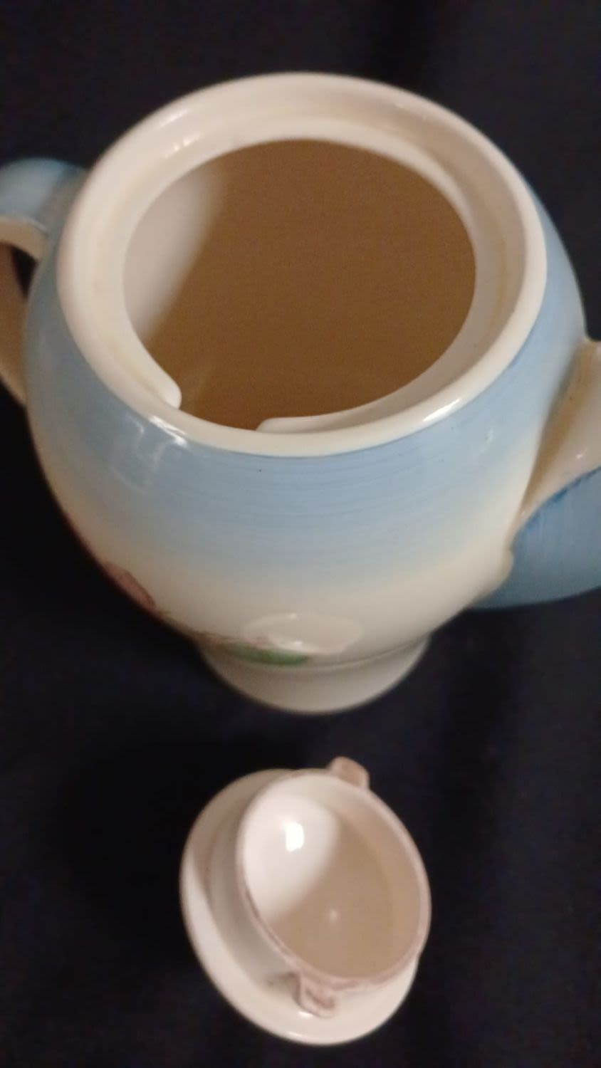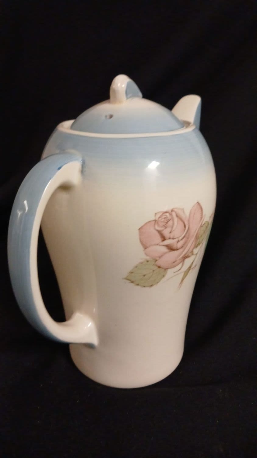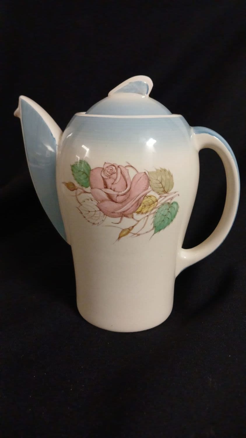 Whether displayed as a centerpiece or used to serve coffee, the Kestel Shaped Suzie Cooper Blue Hand Painted Coffee Pot is a tribute to the fusion of art and utility.