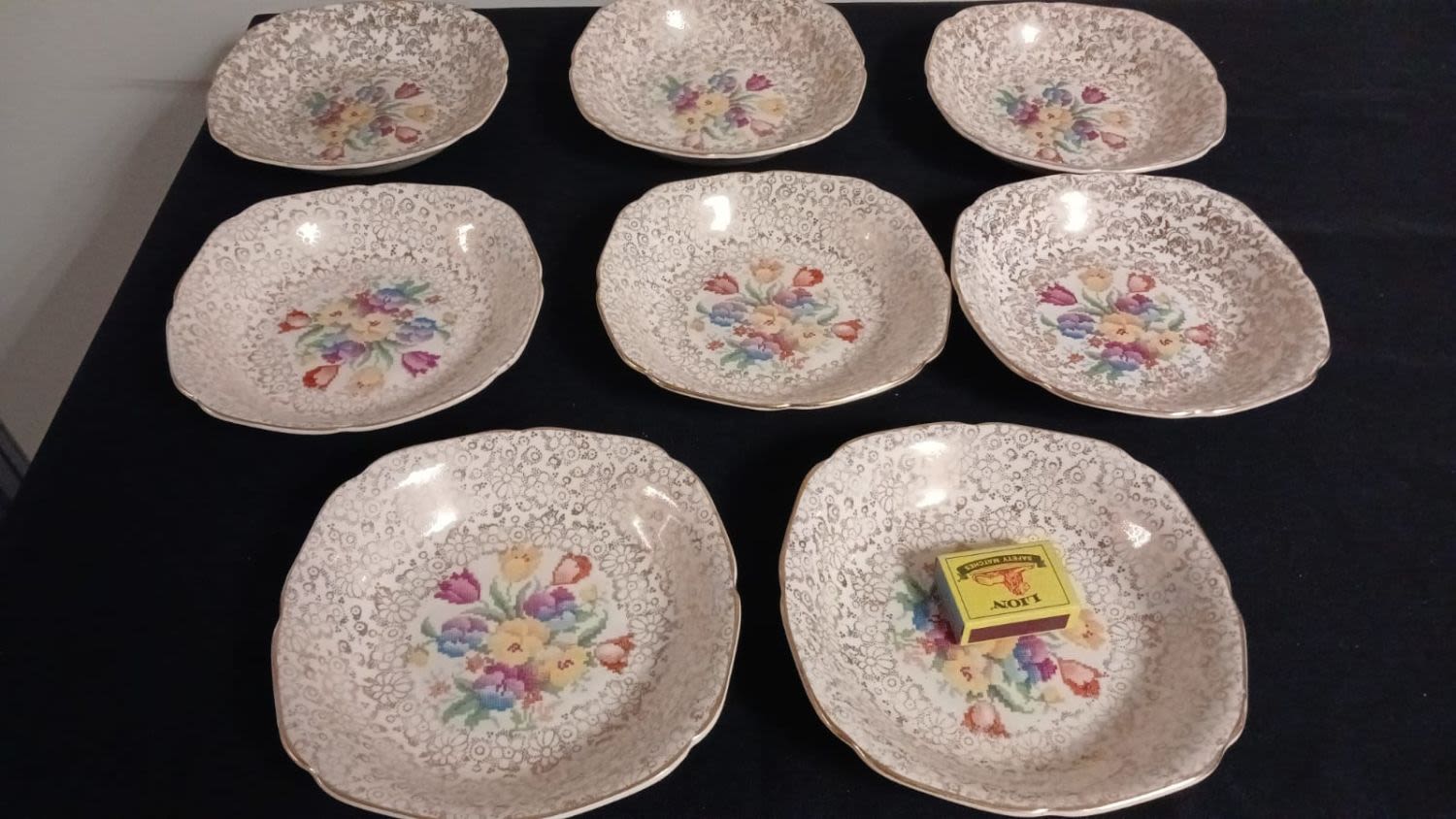 All in used condition but without cracks, chips or crazing, the gold has worn through on some of the items.