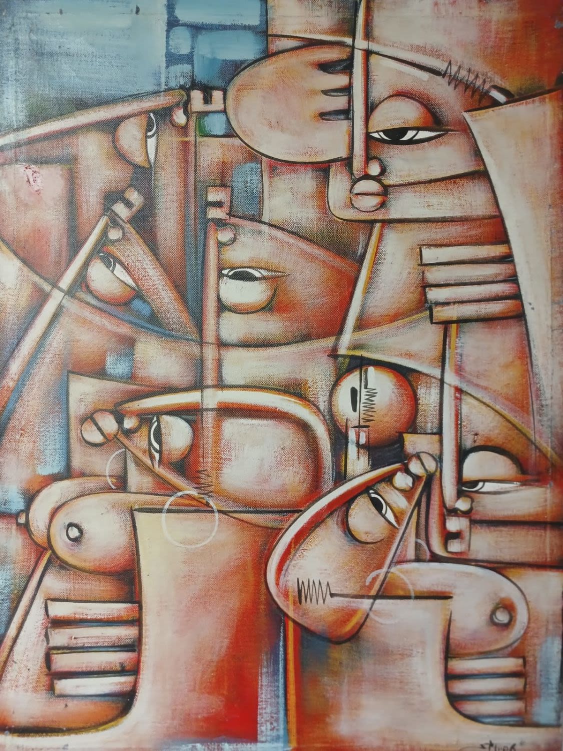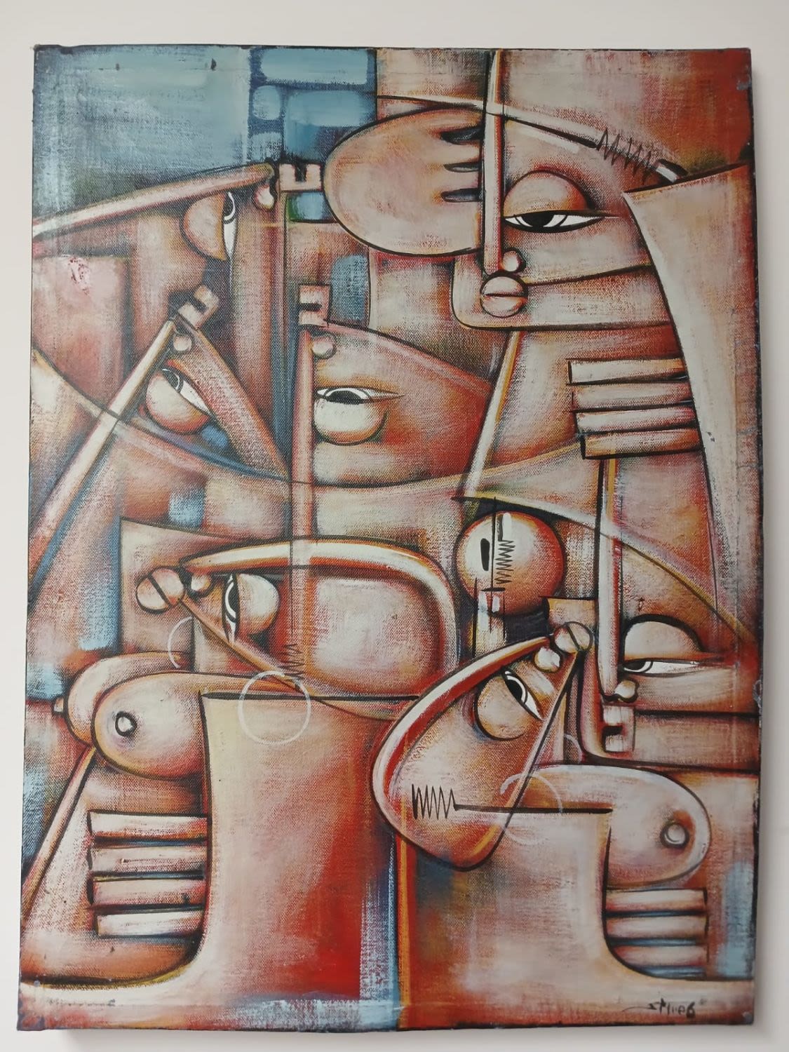 Original Signed Painting in Acrylic on Canvas by Mozambican Artist H. Simbine