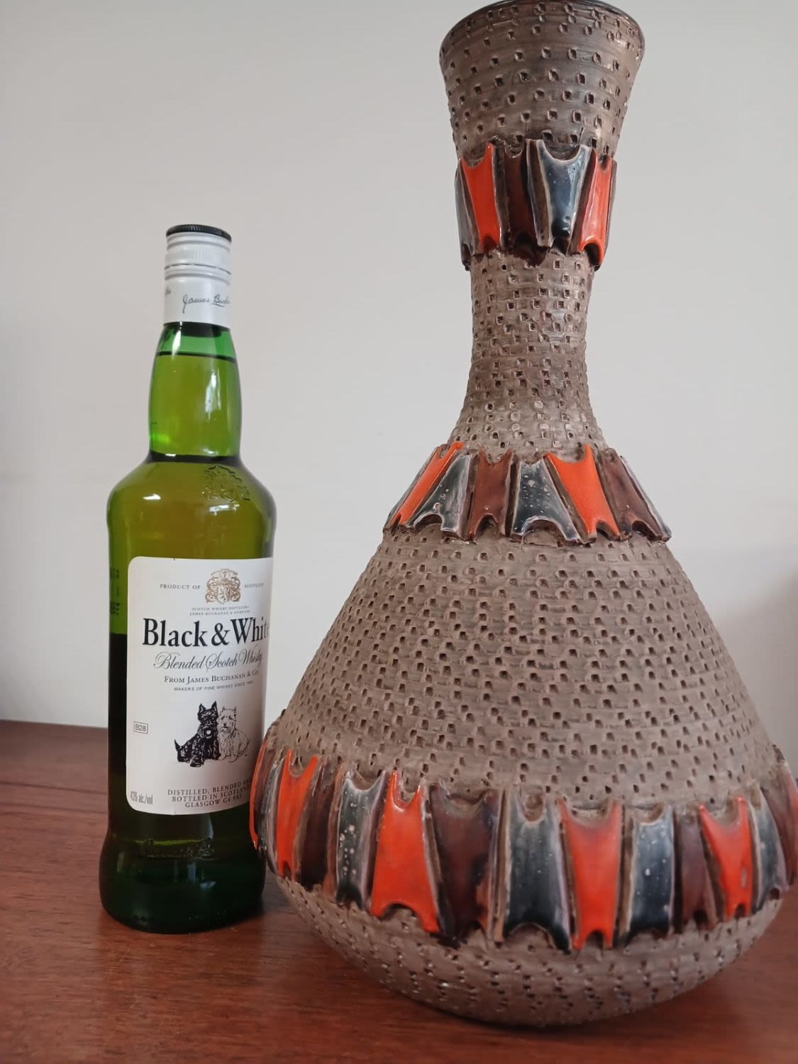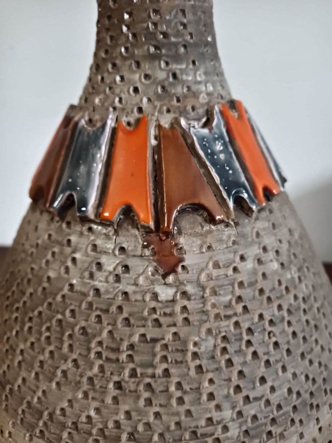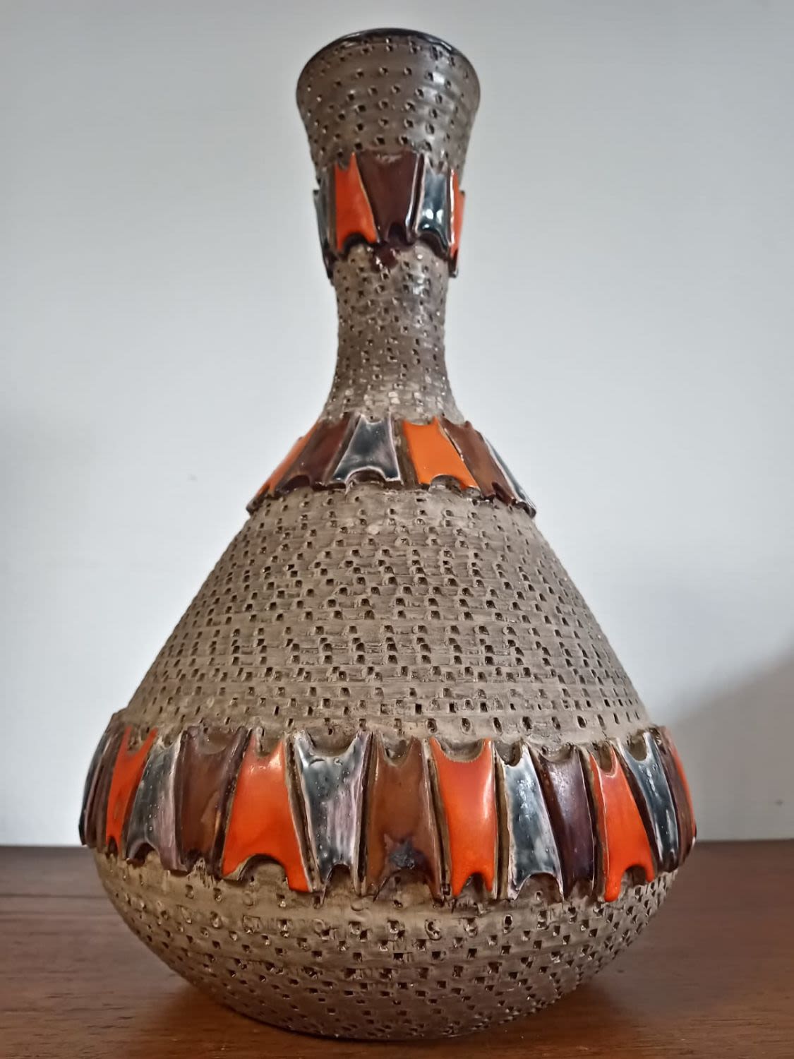 A Mid-Century Fratelli Fanciullacci pottery vase from Italy, dating back to between the 1950s – 1960s, representing a pinnacle of Italian ceramic artistry during this period. This vase is a striking embodiment of the era’s design sensibilities, characterized by a fusion of traditional craftsmanship and modernist influences.
