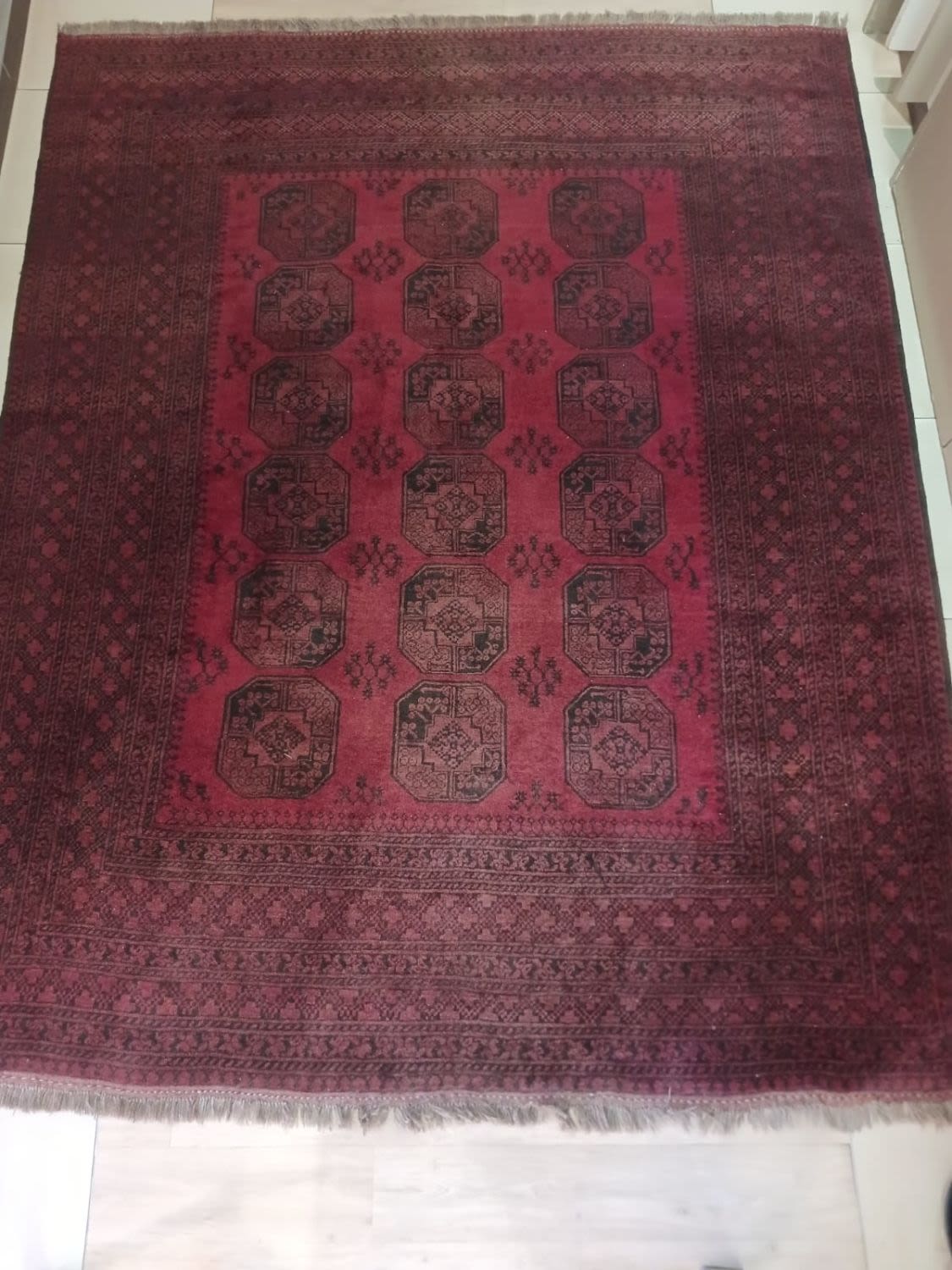 Elephant Foot Rug from Afghanistan is a distinctive piece measuring 314cm x 257cm. Crafted in the traditional Afghan style, this handmade rug reflects the rich cultural heritage and skilled craftsmanship of the region. The intricate design features elephant footprints, a characteristic motif of Ersari rugs, adding a unique touch to the overall aesthetic. Made from high-quality materials, the rug is handwoven with precision, showcasing the traditional techniques passed down through generations. Its generous dimensions make it not only a visually striking décor element but also a functional and substantial floor covering. This rug serves as a testament to the enduring artistry and cultural significance of Afghan rug-making traditions.