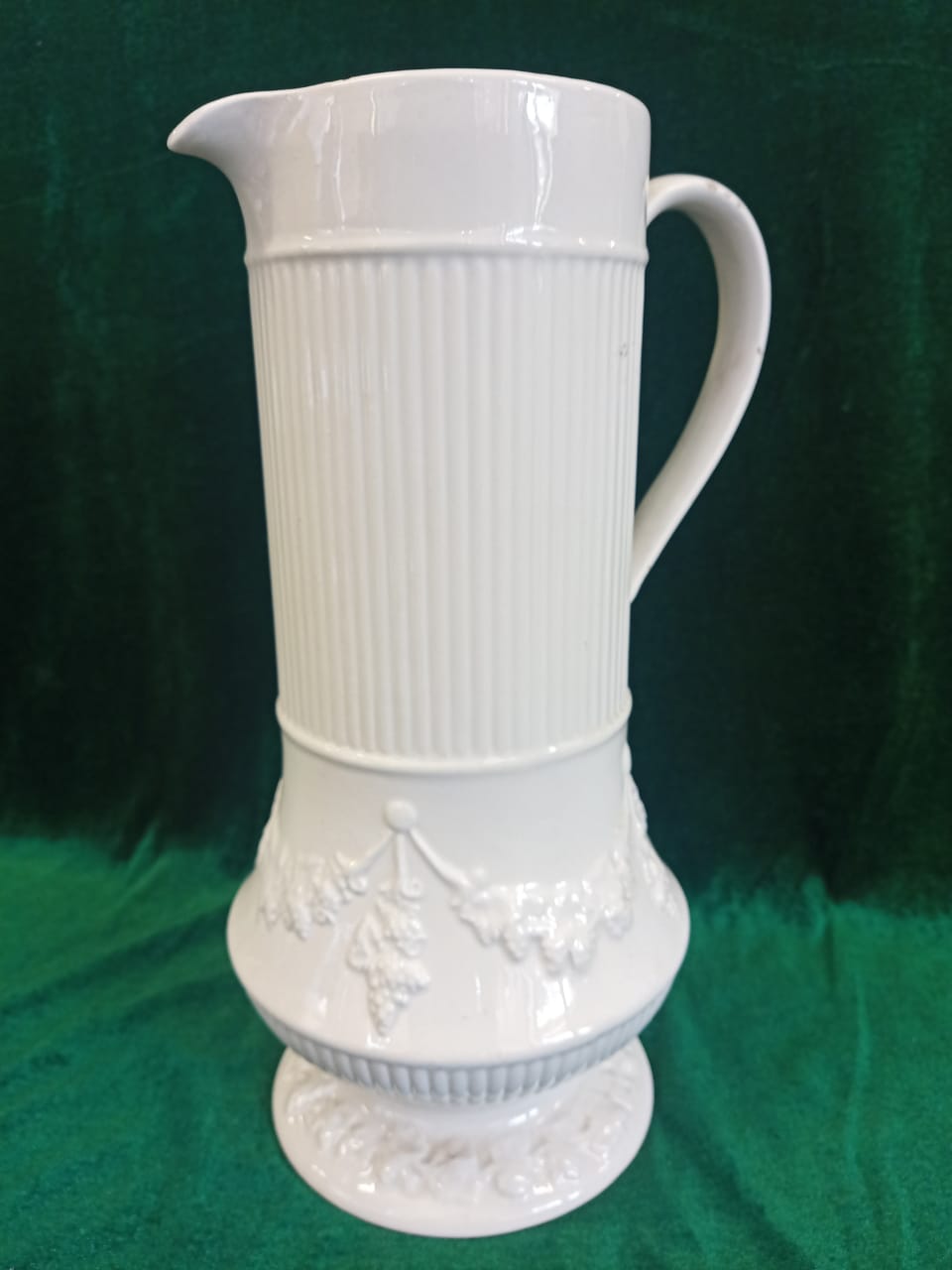A beautifully crafted ceramic piece standing 30 cm tall with a width of 18 cm from spout to handle. It features a traditional Italian design, characterized by intricate patterns. It’s size and shape make it suitable as both a decorative vase and a functional jug, embodying classic Italian artistry and craftsmanship.