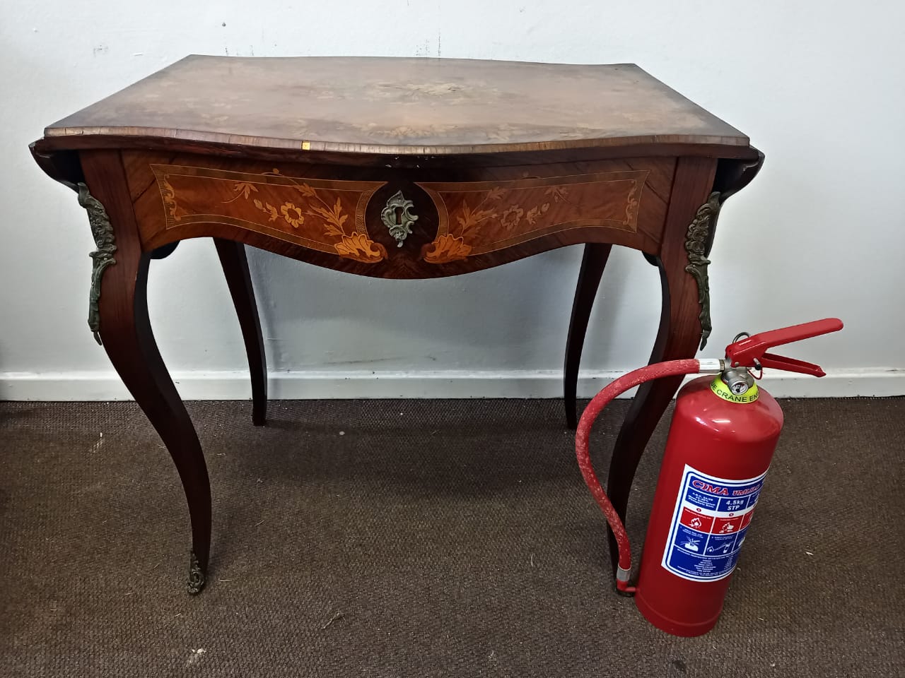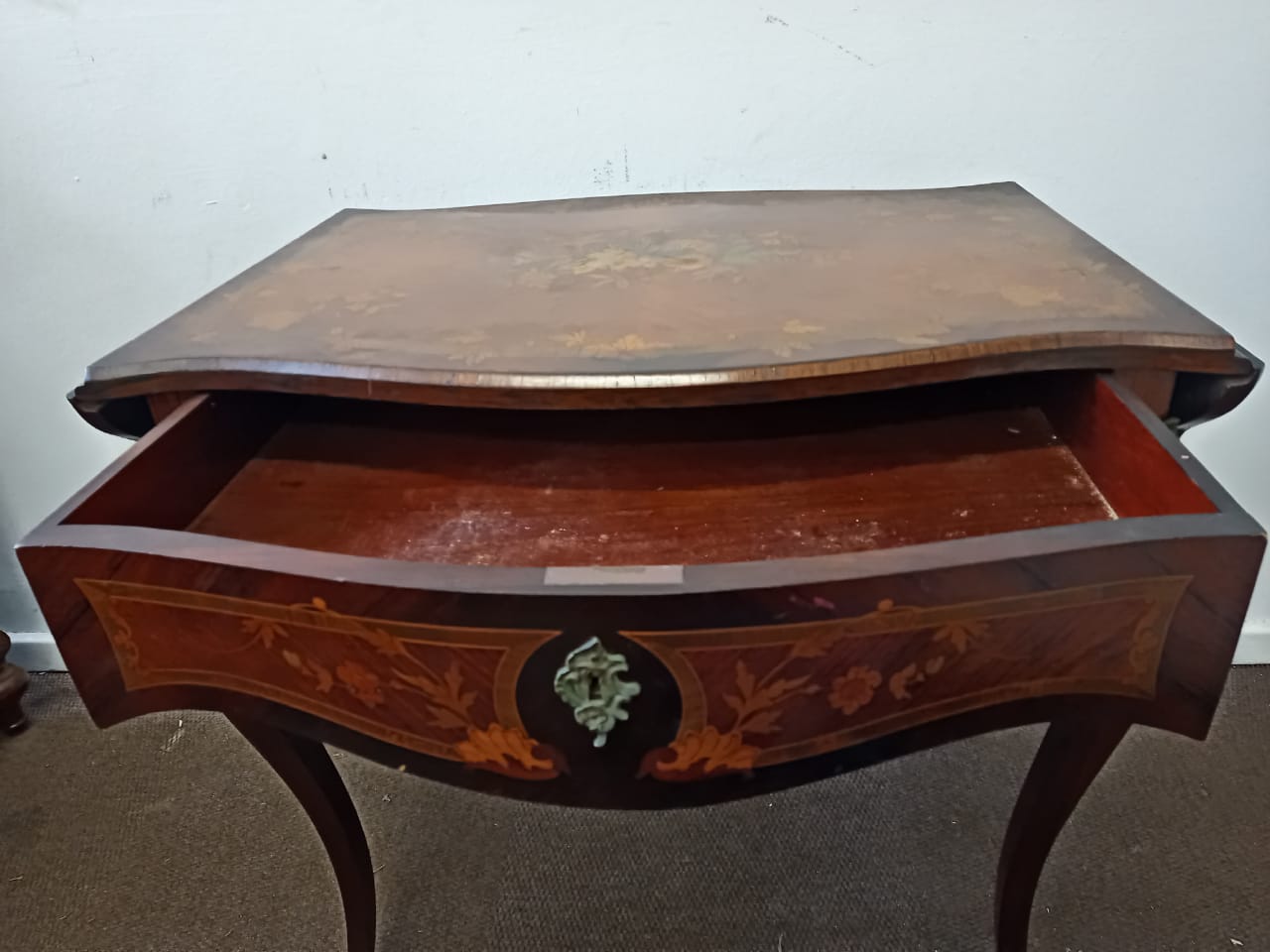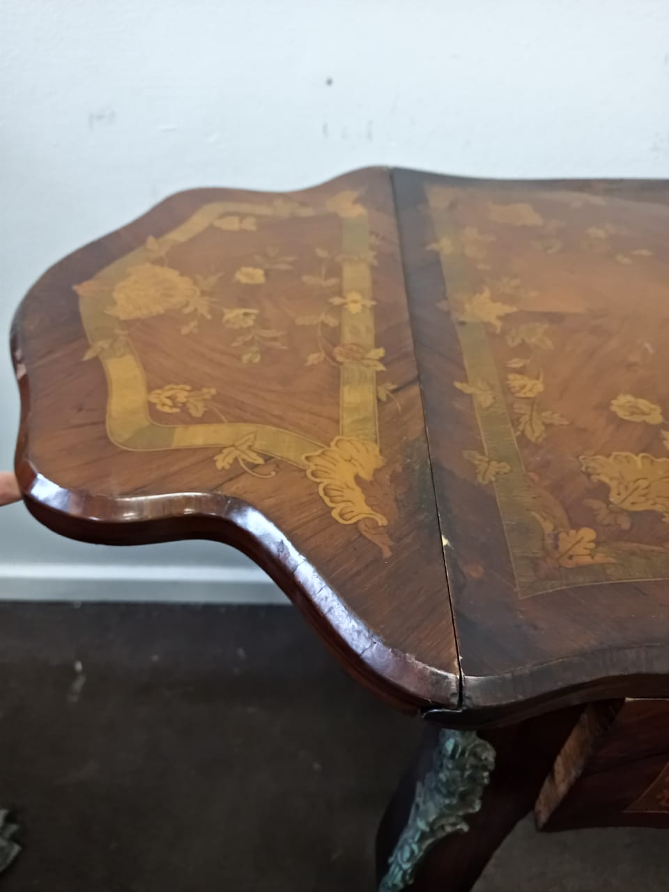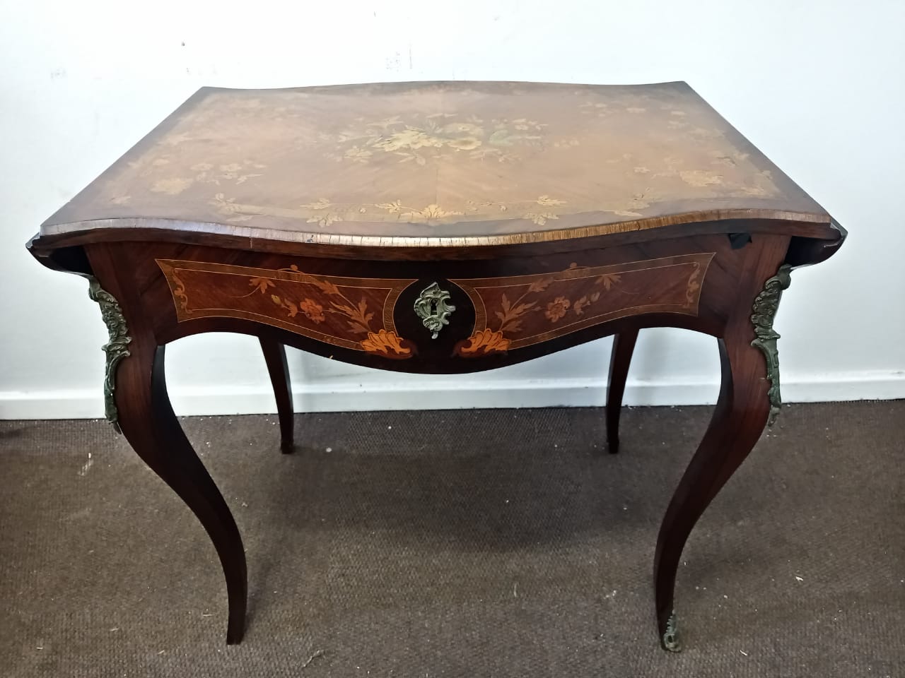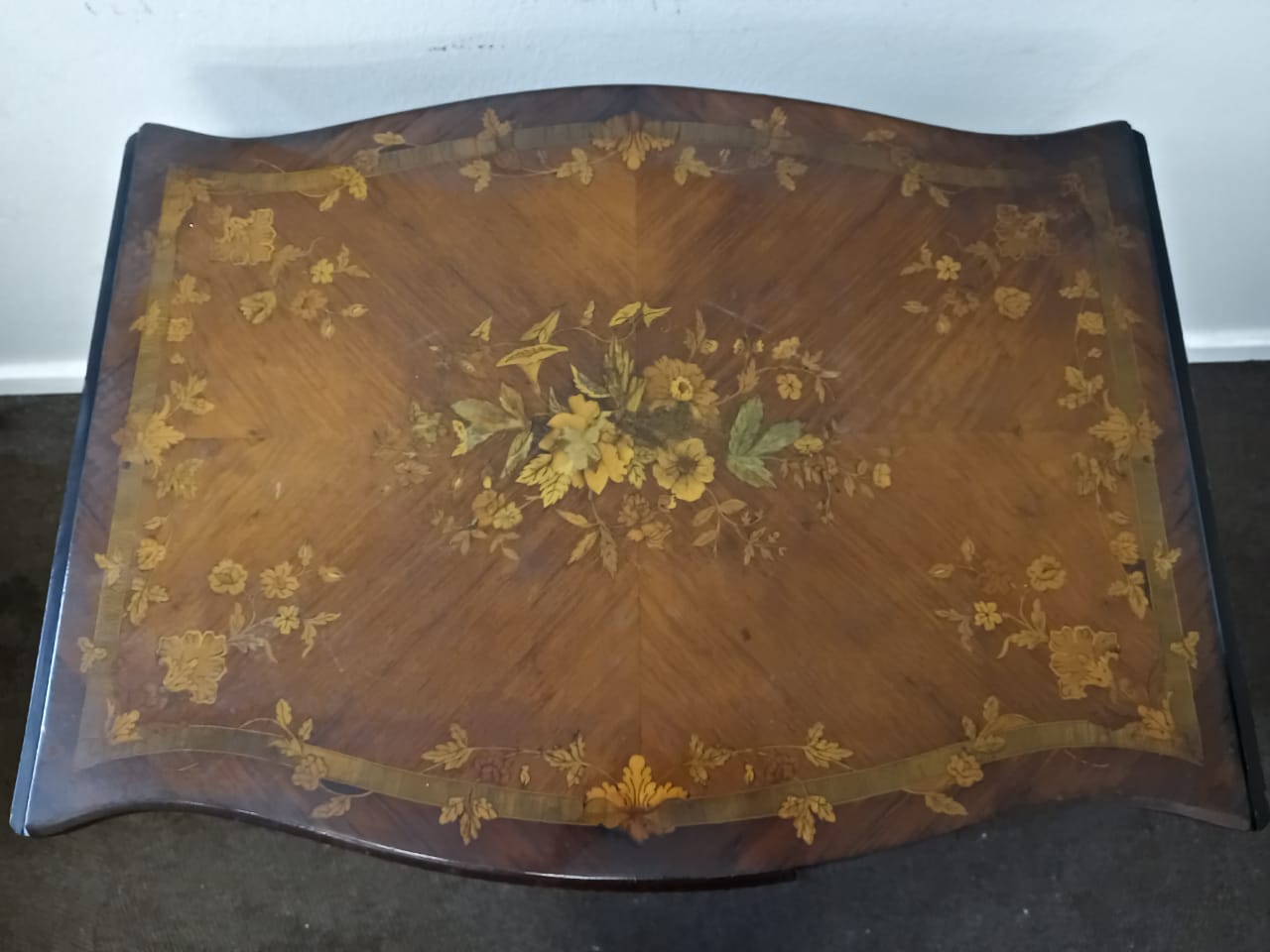 Vintage Floral Marquetry Drop Leaf Table.