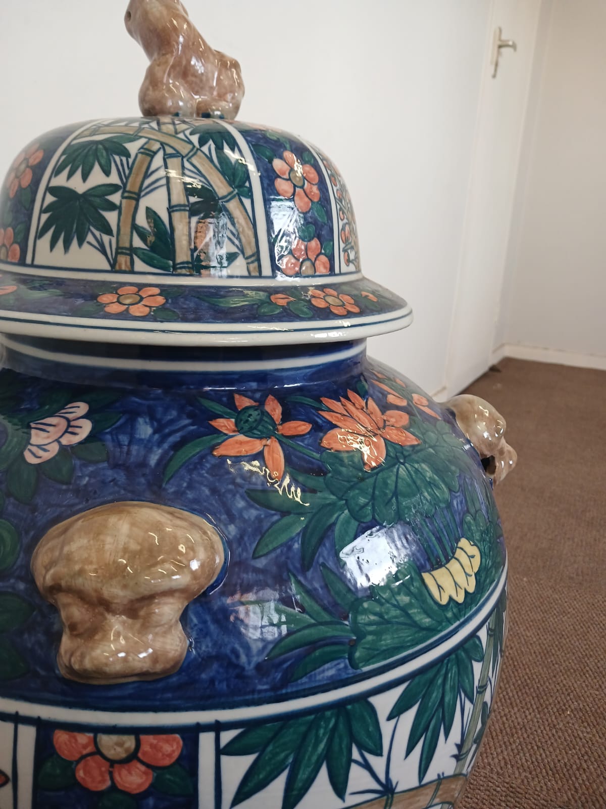 This monumental jar makes an impressive statement, ideal for decorators, stylists or collectors of chinoiserie-inspired interiors.