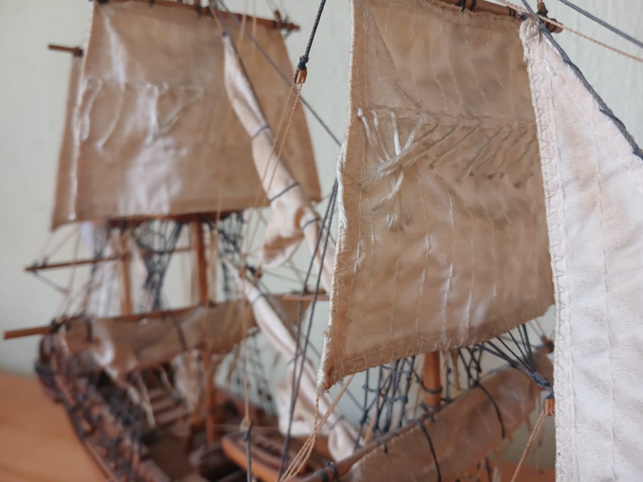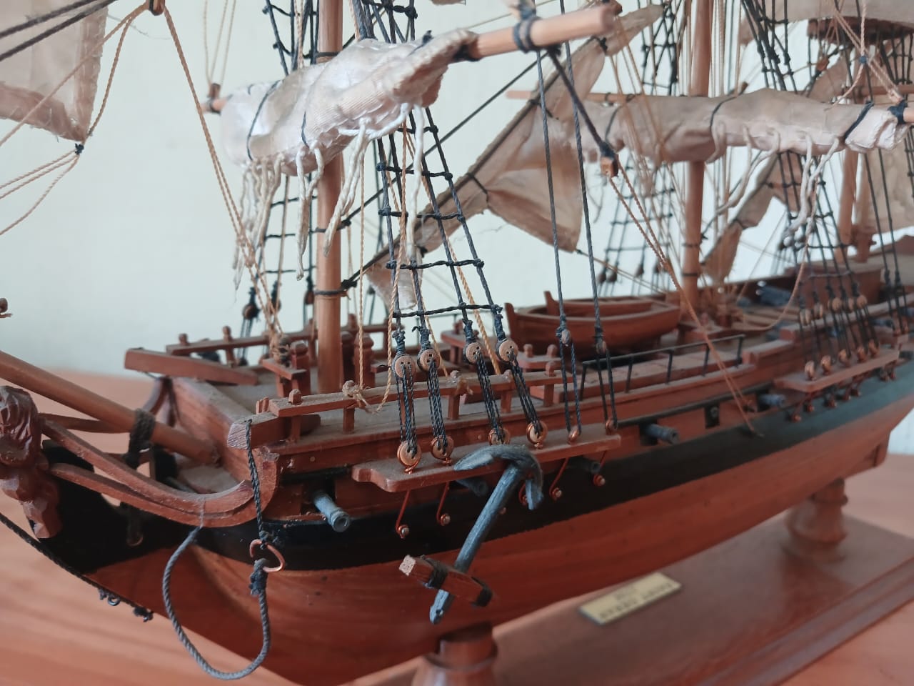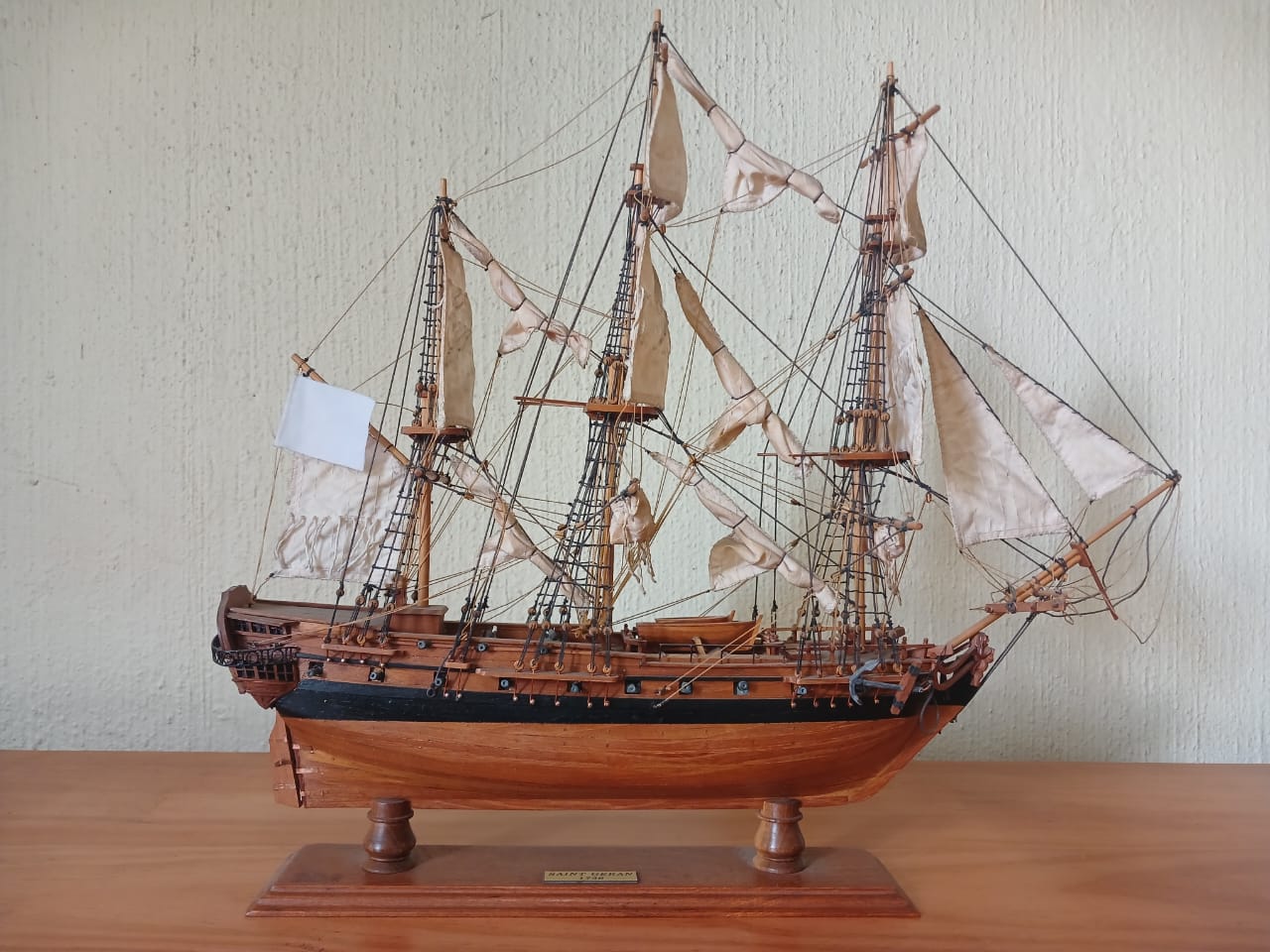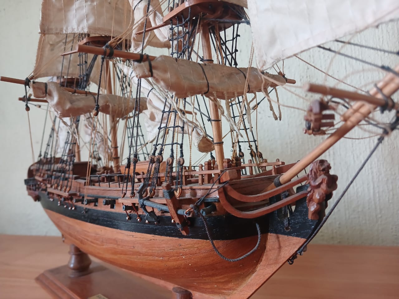 This Saint Geran model is a scale replica of the historical French merchant ship, the Saint Géran, which was launched in 1736. This models is highly detailed, featuring realistic construction with wood, cotton, and metal. A desirable model popular as decorative piece or collector’s item.