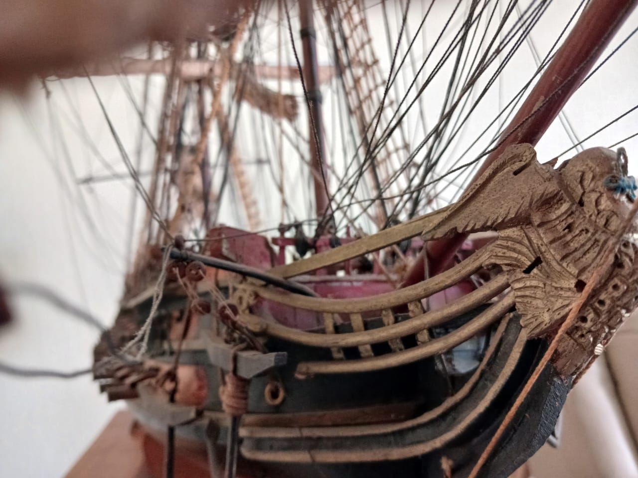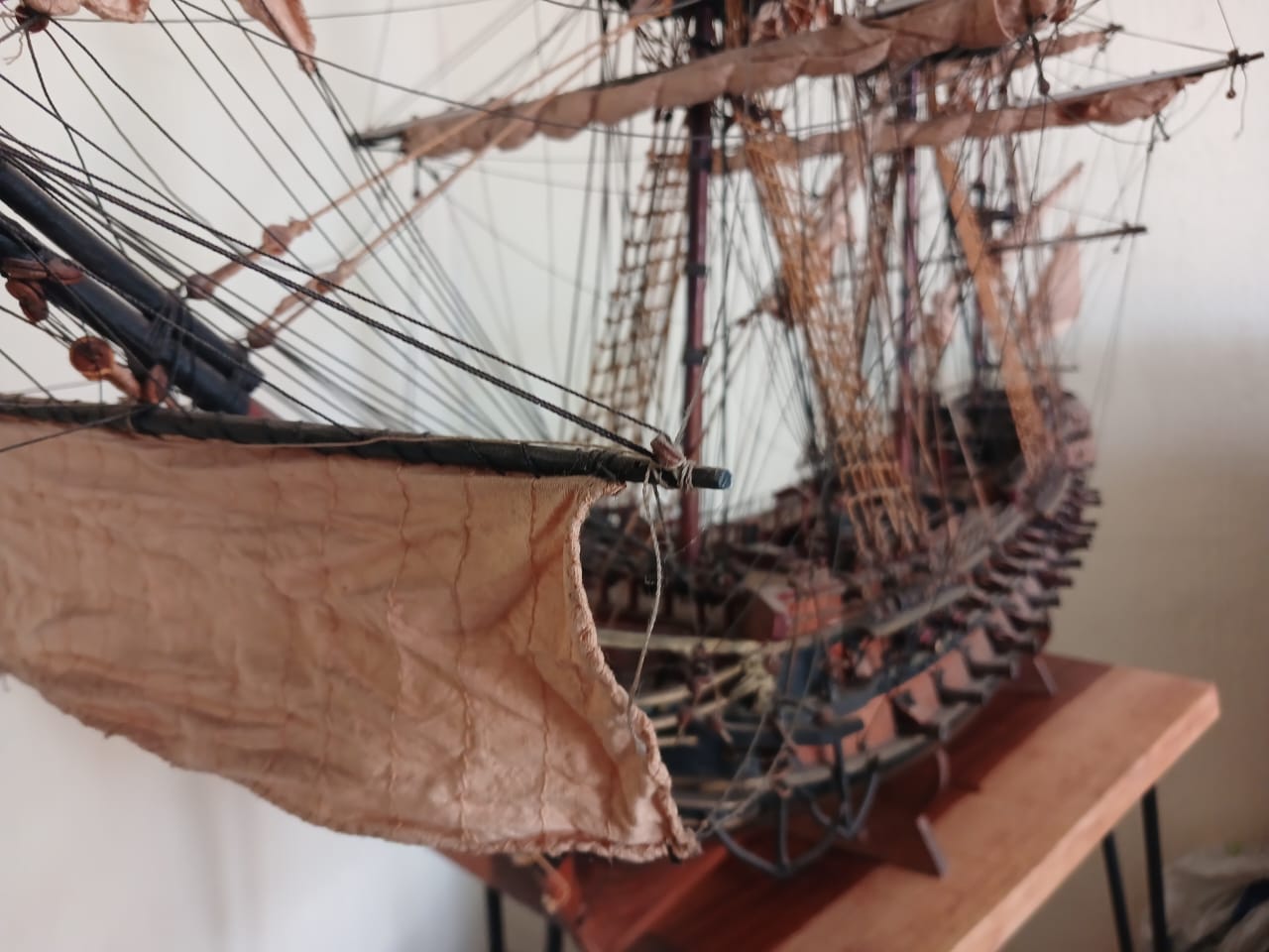 The model is in good condition, showing expected signs of age such as light dust, which adds to its authentic charm. It presents very well and makes an impressive display piece for collectors, maritime enthusiasts, or interior décor.
