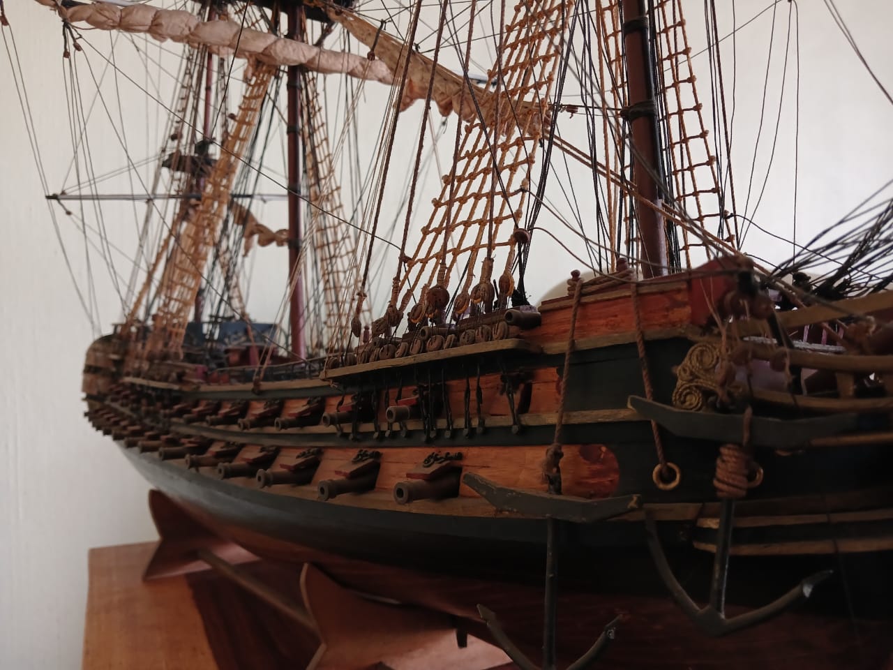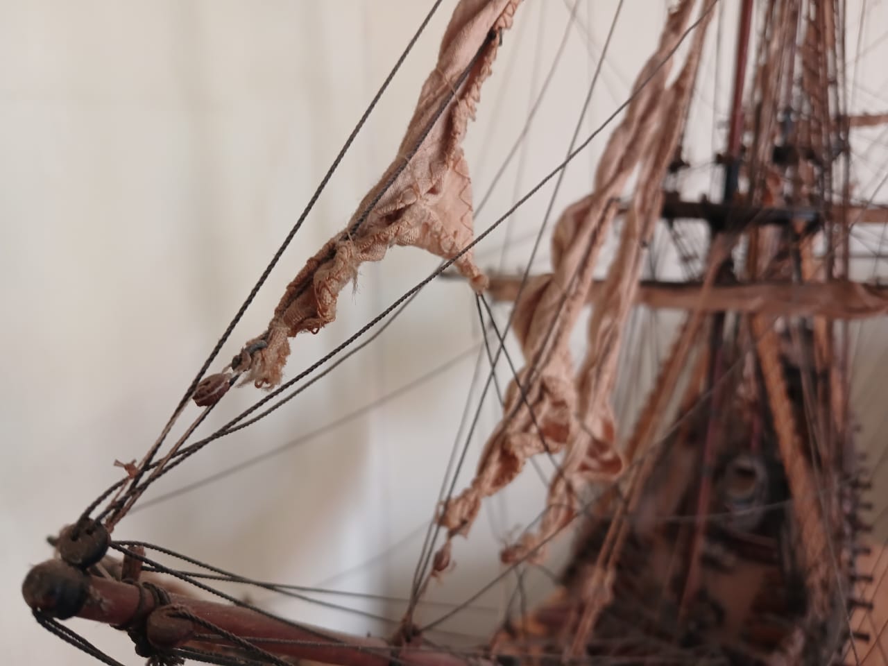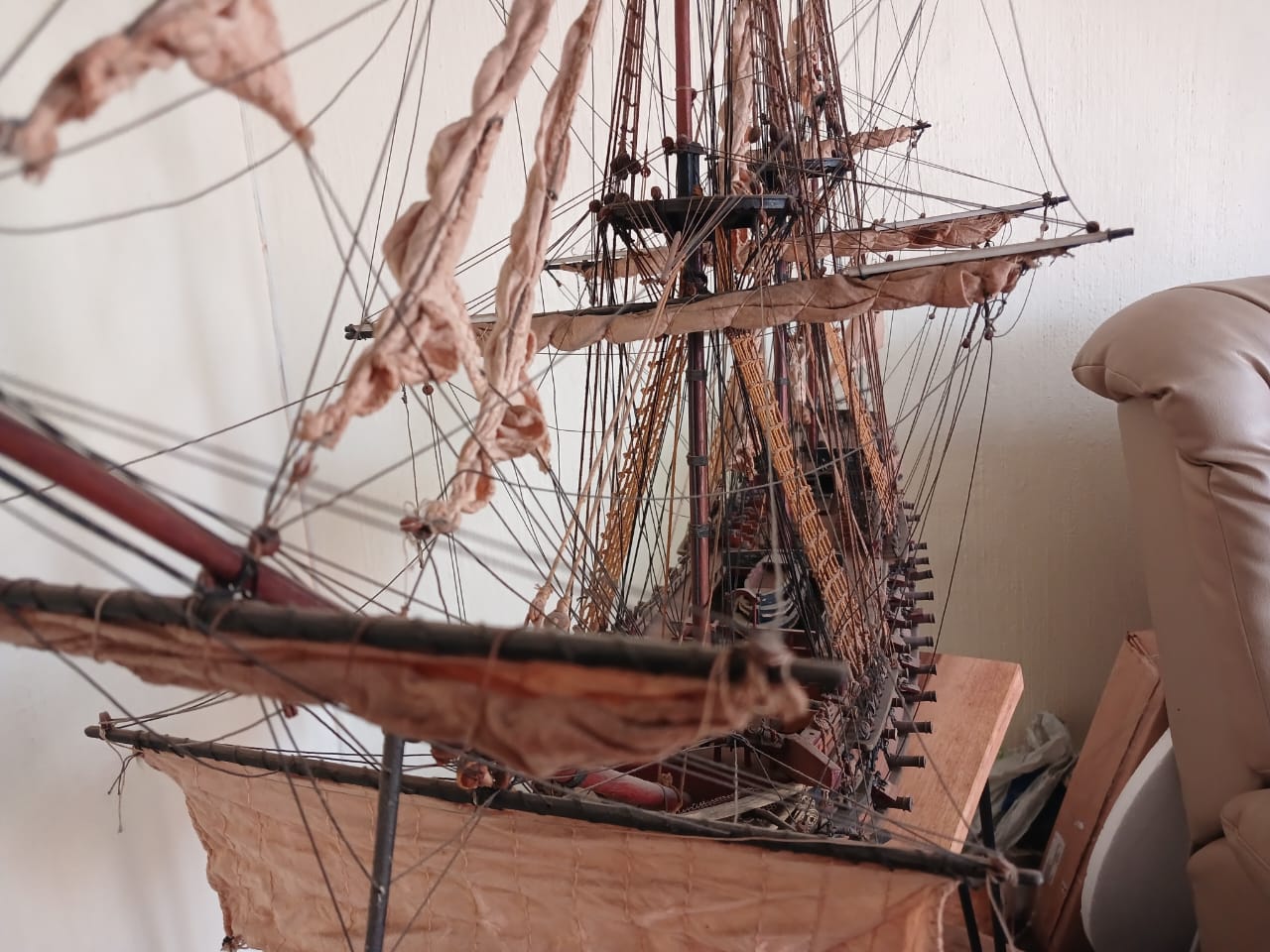 Handcrafted Wooden Bounty Model Ship – Vintage Replica with Cotton Sails & Metal Details
