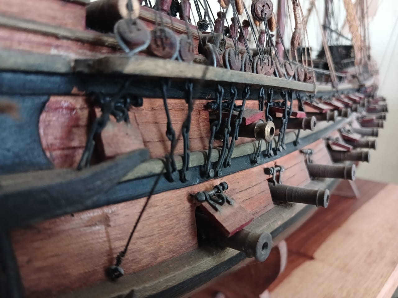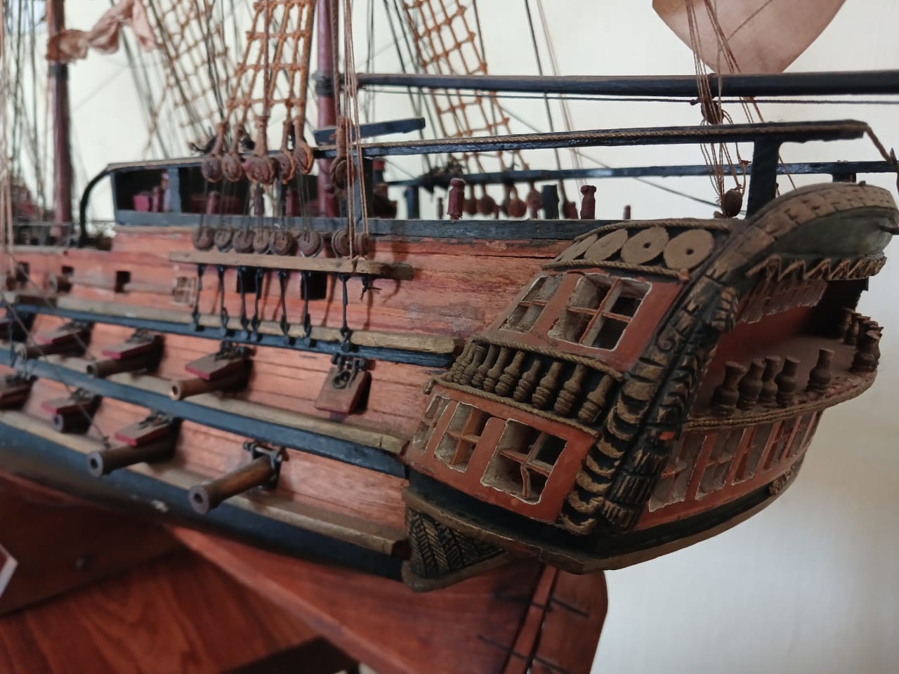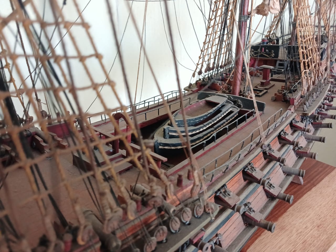 Handcrafted Wooden Bounty Model Ship – Vintage Replica with Cotton Sails & Metal Details