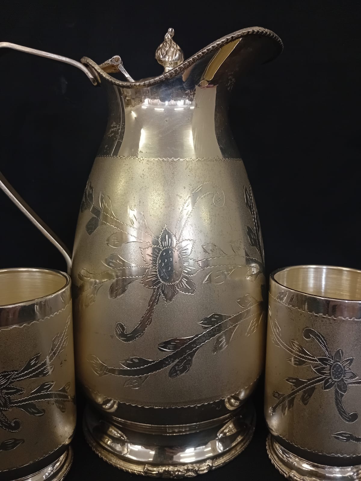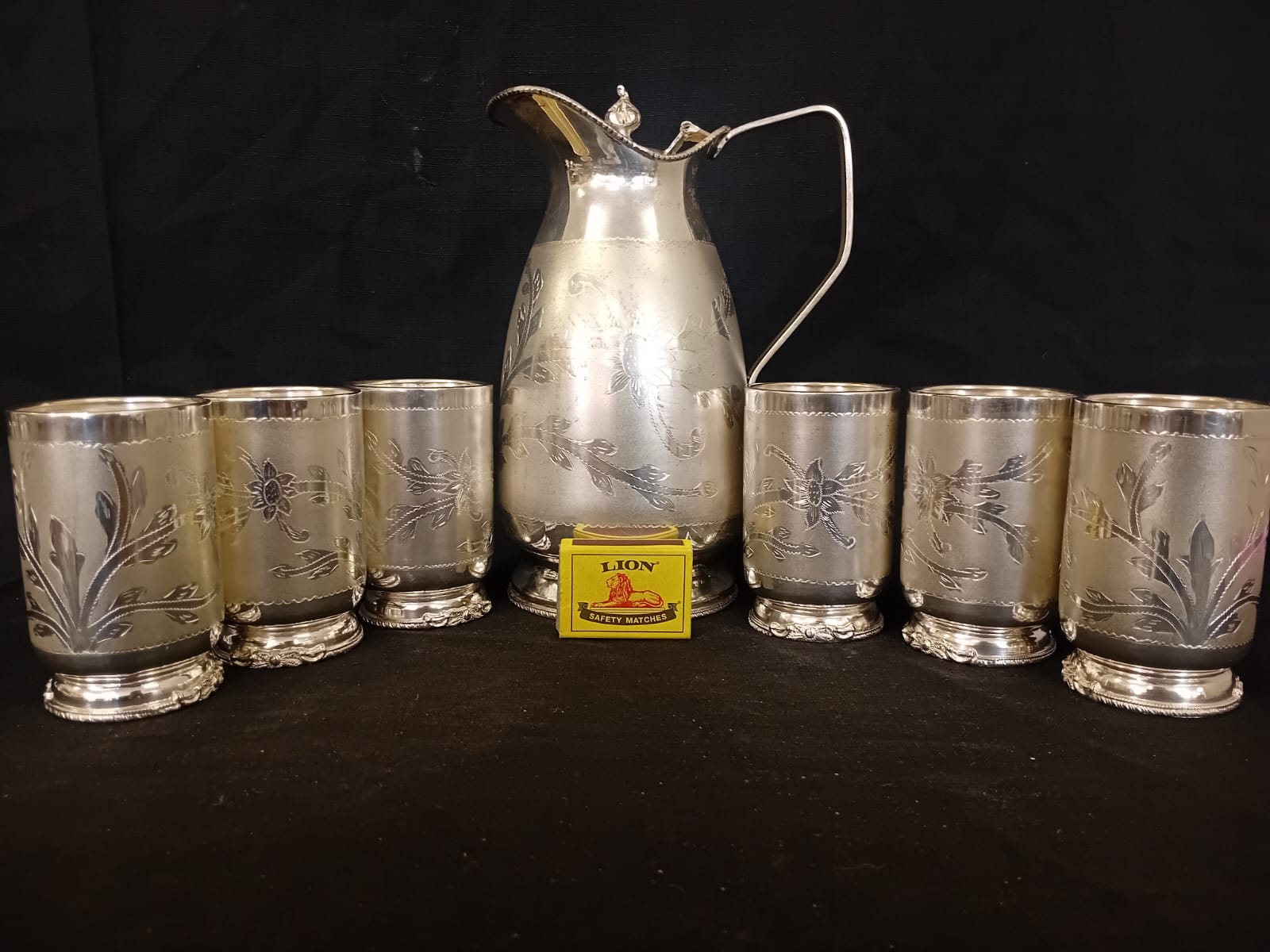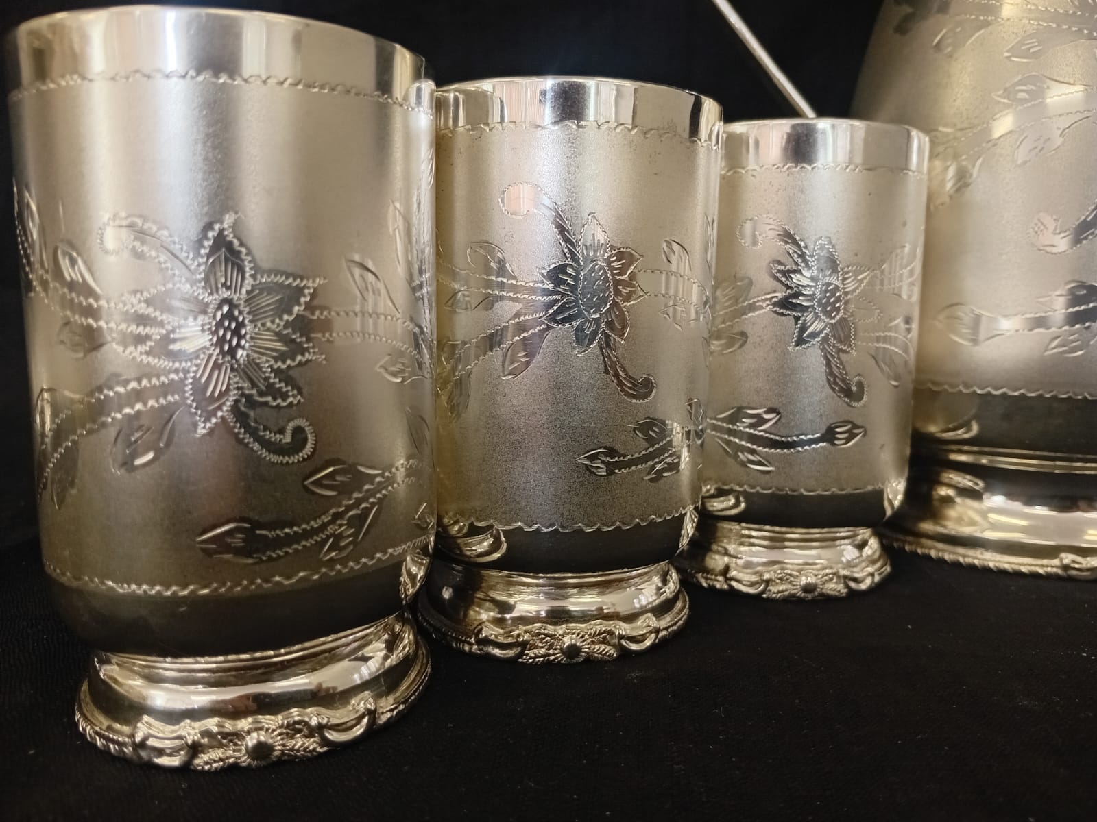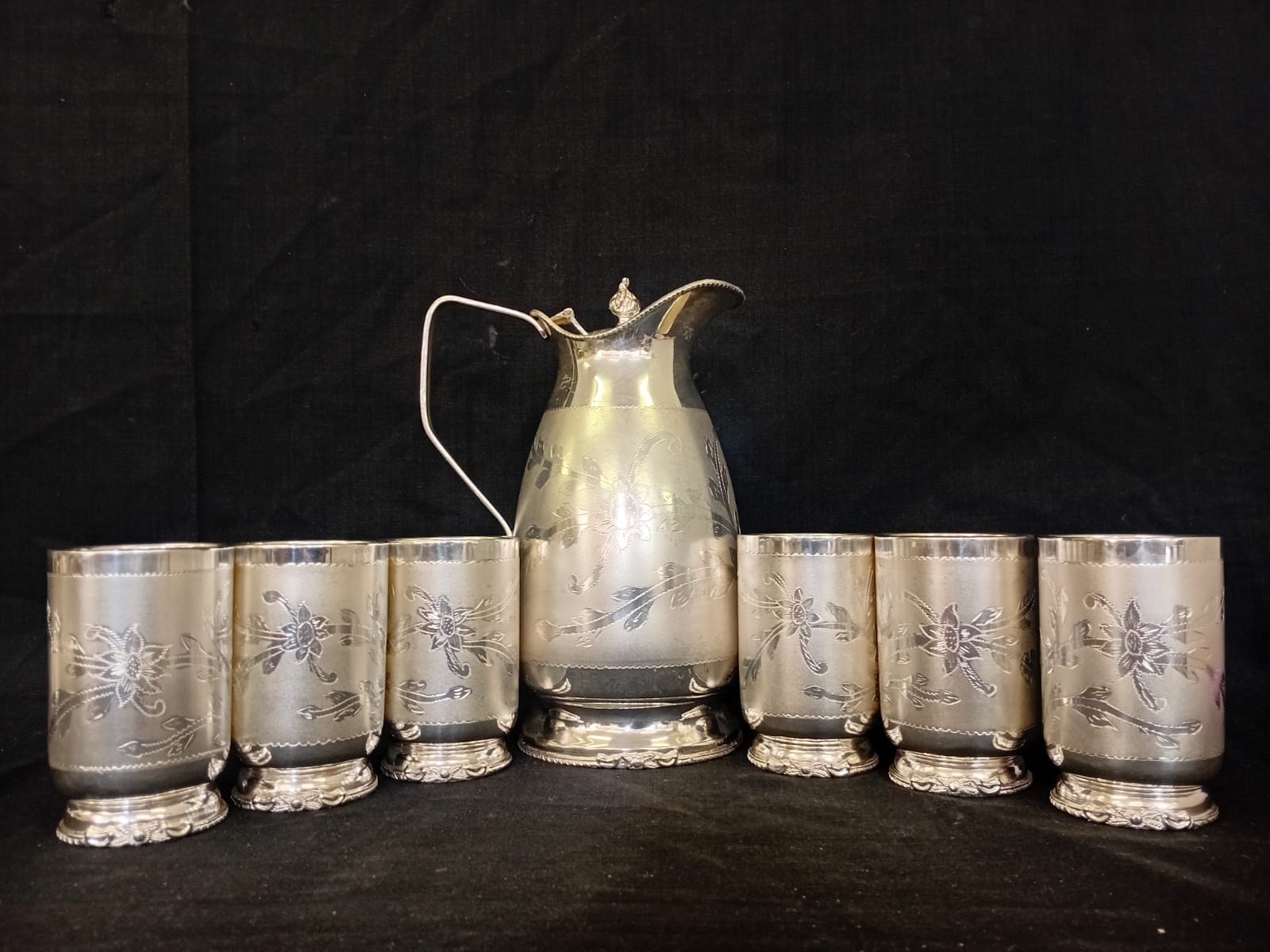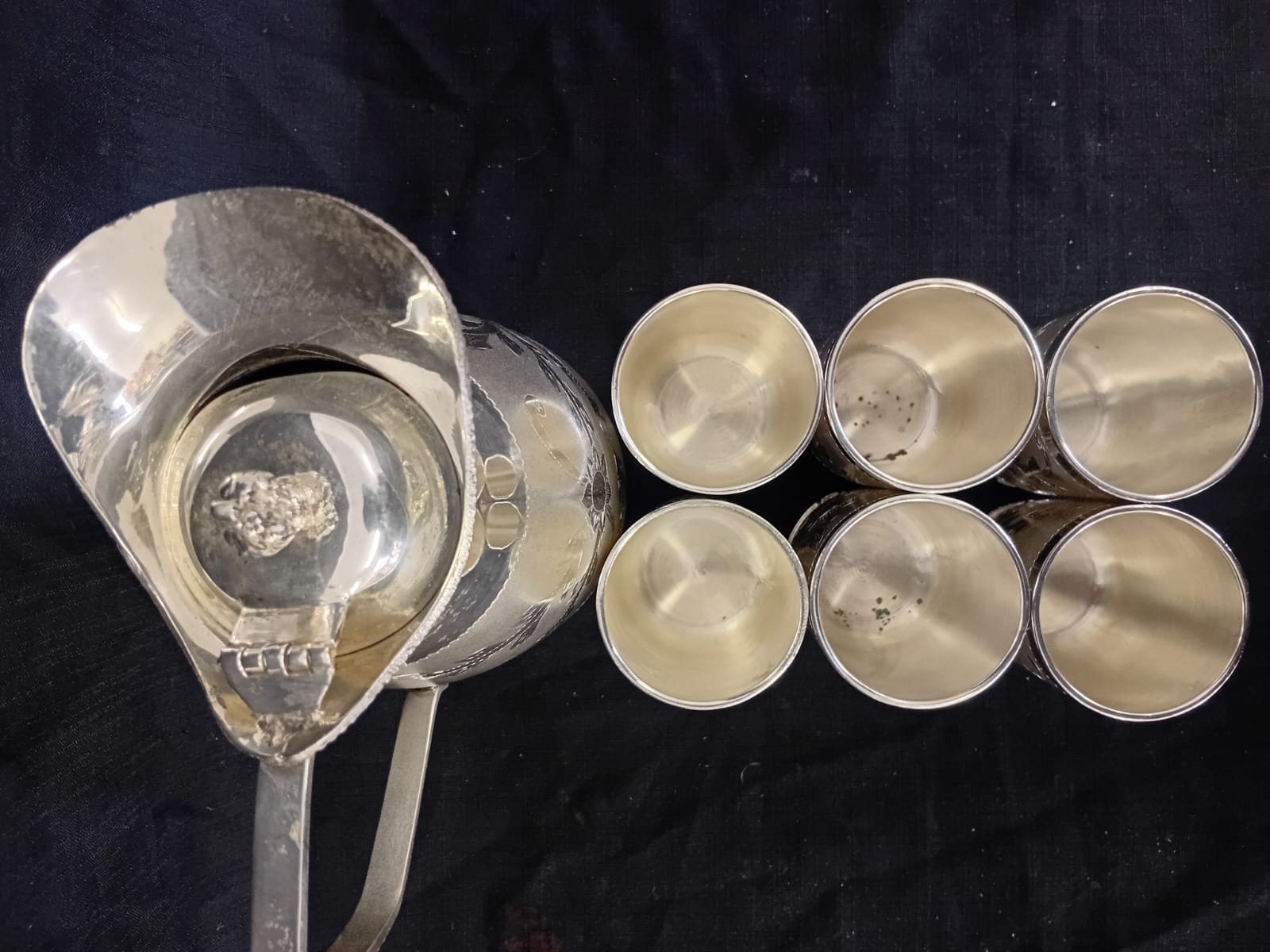 Water Pitcher & 6 Matching Cups Stamped Silver - Total Weight 1.169kg