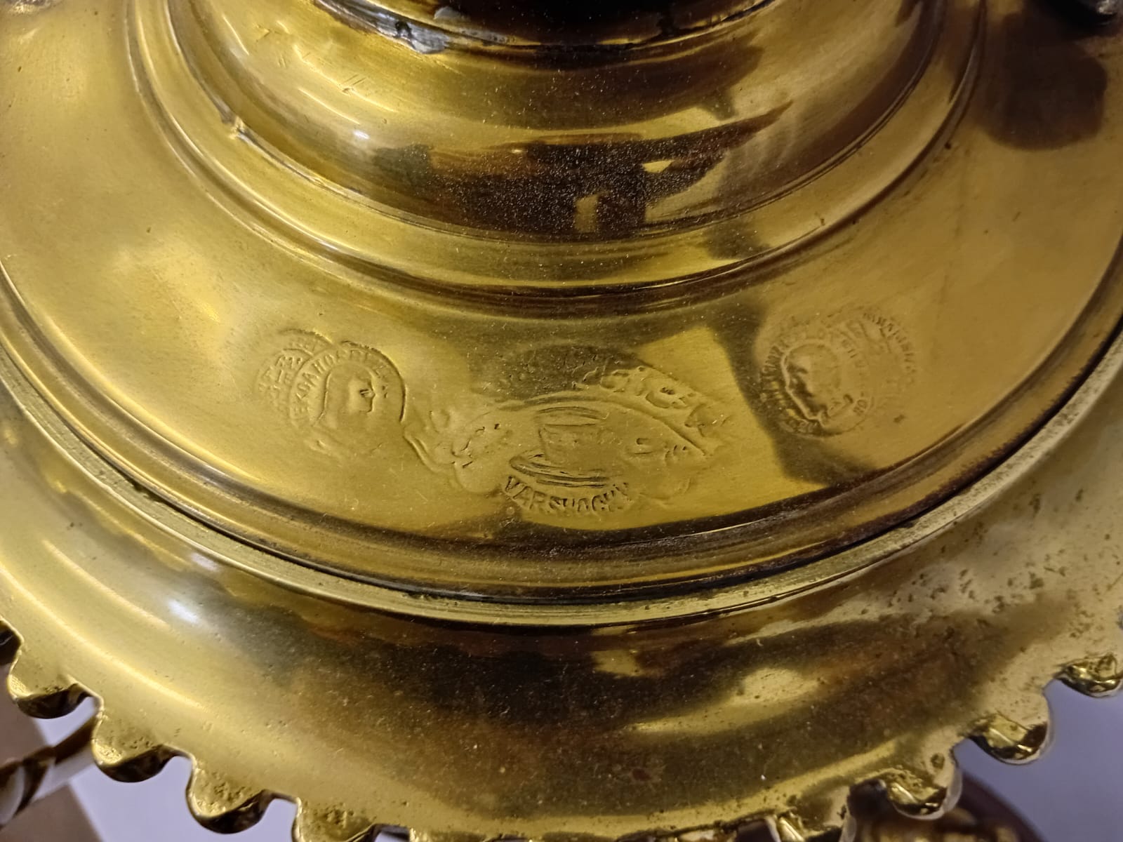 A vintage brass samovar is a traditional Russian-style tea urn, often ornately decorated, used for heating and serving tea. This set includes a large, polished brass samovar with a spigot for pouring hot water, a matching teapot that sits on top to keep tea warm, and a bowl for used tea leaves or waste. The samovar features intricate engravings, and a chimney for charcoal heating. Its elegant design and craftsmanship make it a striking decorative piece as well as a functional tea-making tool.
