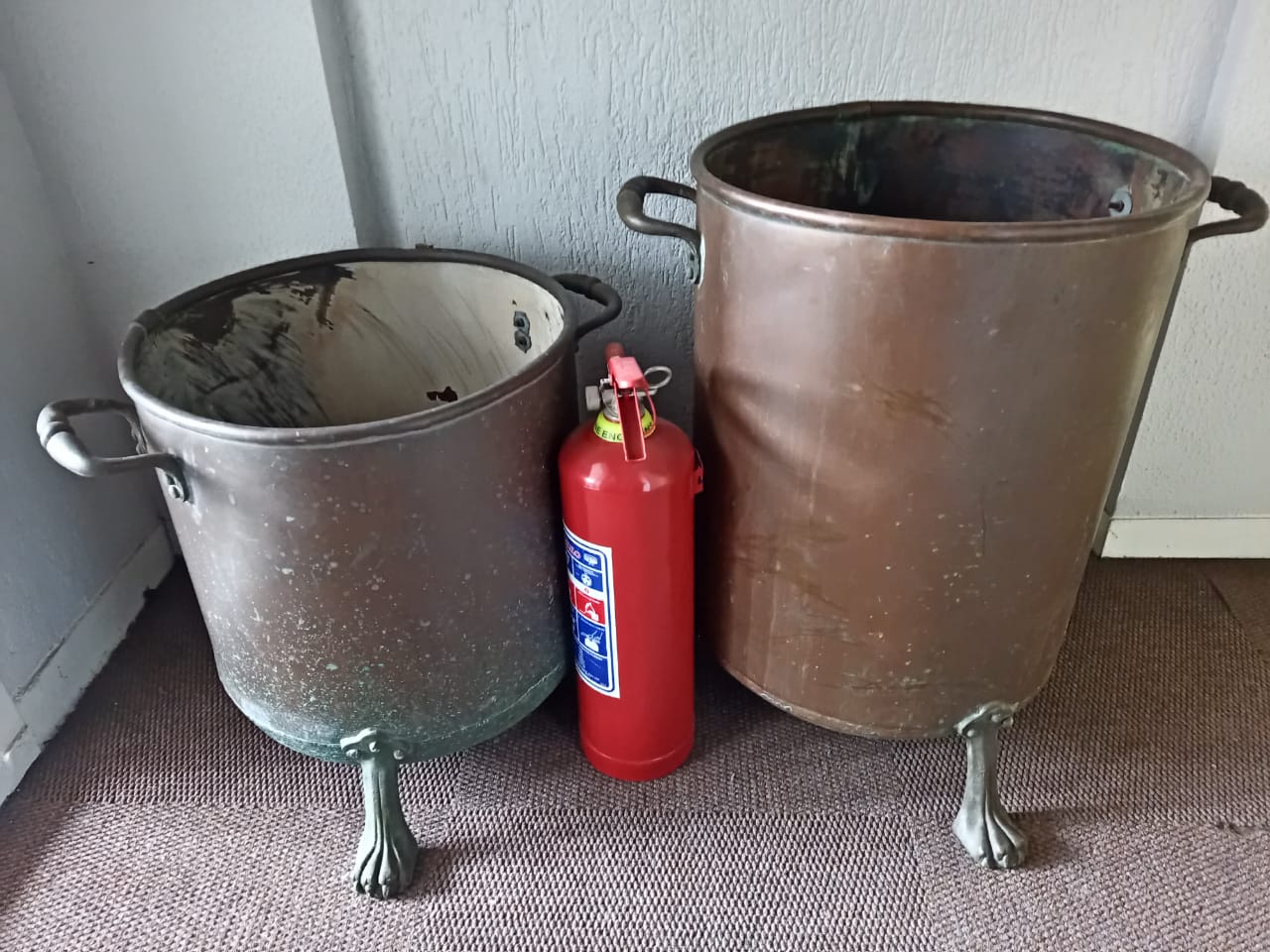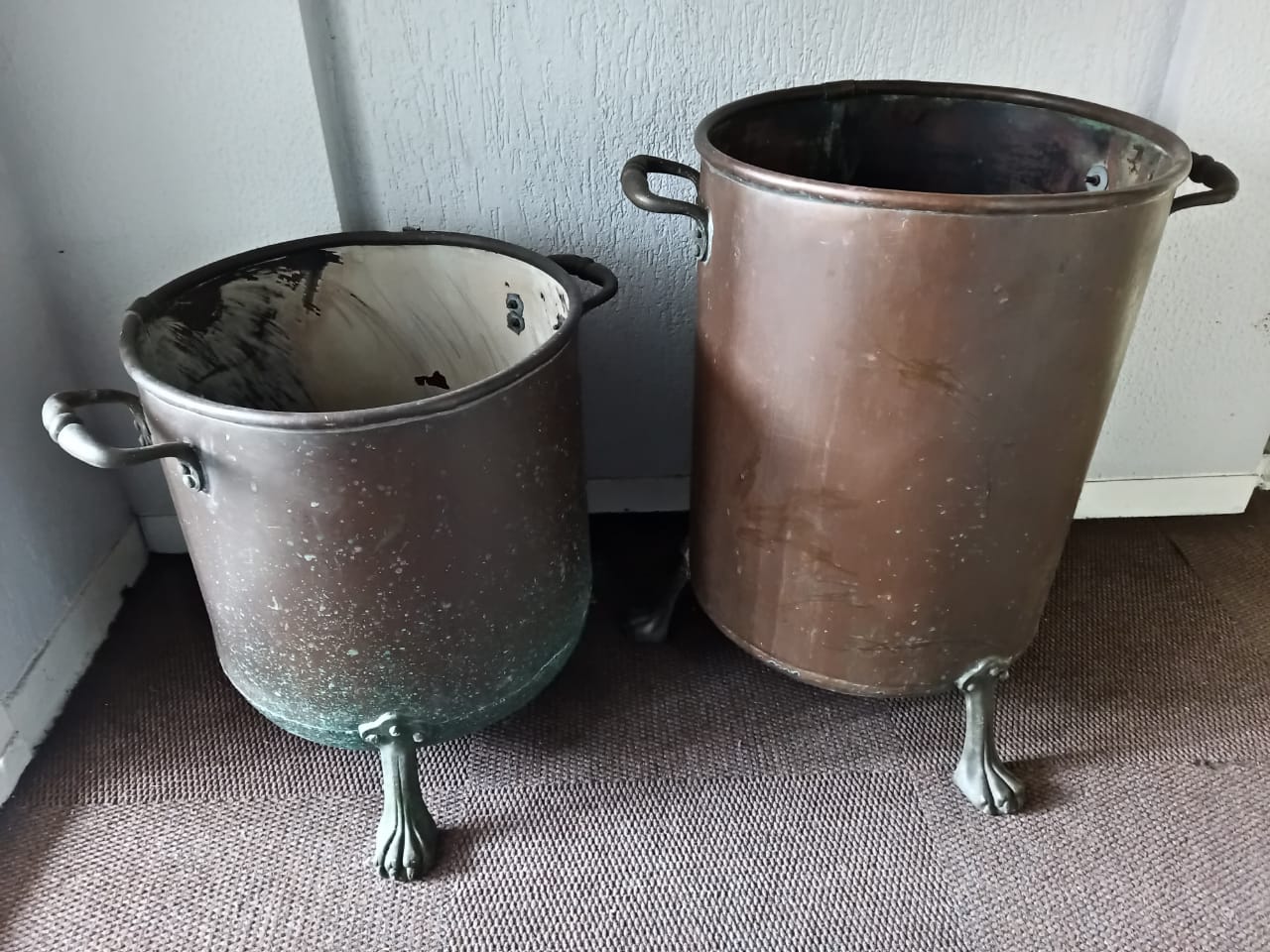 The copper bodies contrast beautifully with the brass accents, making these pots elegant, durable, and suitable for adding a vintage charm to any space.