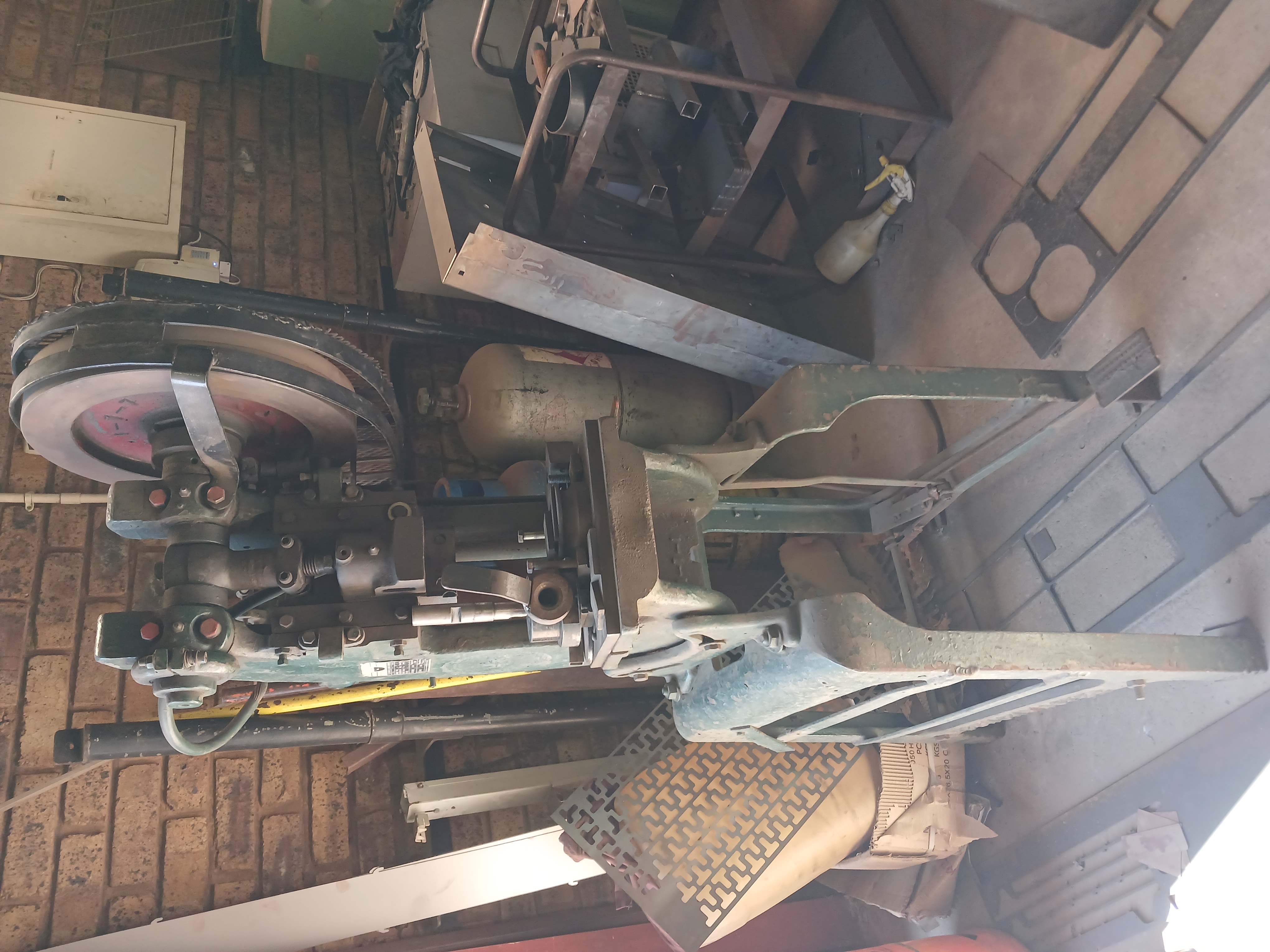 This heavy-duty 7.5-ton eccentric press, manufactured by Benchmaster Tools, offers solid construction and industrial strength. The machine is currently untested and has not been in use for some time, so it is being sold as-is.
